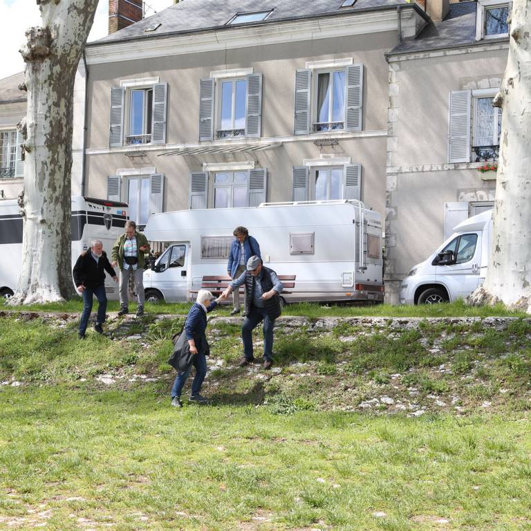 Nach mehr als zweistündiger Wanderung benutzen wir die Gelegenheit noch etwas zu Essen. Dann ging es weiter nach Chinon. Wir hatten wie bereits in La Charité einen Stellpatz gegenüber der Festung. Wir bauten eine Wagenburg und entschlossen noch einen Spaziergang zu den Sehenswürdigkeiten zu machen. Die königliche Festung Chinon befindet sich in der Region Centre Val de Loire. Die von den Grafen von Anjou, insbesondere den Plantagenêts, errichtete Festung Anjou überragt die Stadt und ist das Sinnbild einer Zeit, als die Geschichte Frankreichs und Englands untrennbar miteinander verbunden war. 1429 findet im großen Saal des Hauptbaus die Begegnung zwischen Jeanne d'Arc und dem Kronprinzen, dem zukünftigen Karl VII., statt. Da ein Lift zur Festung führte kamen alle mit.