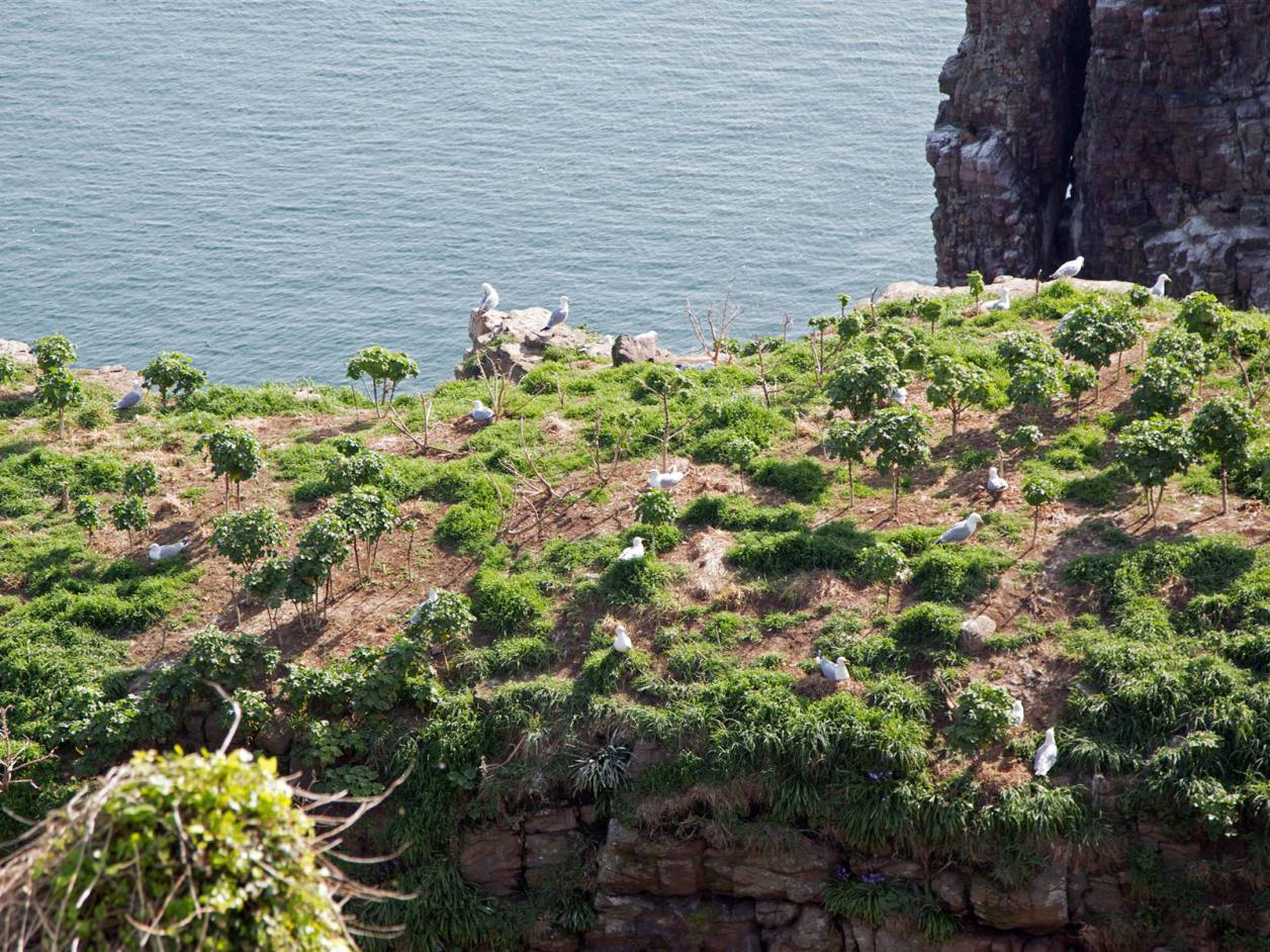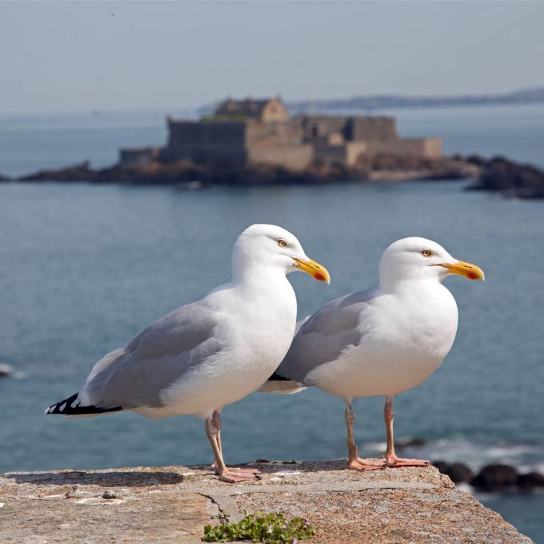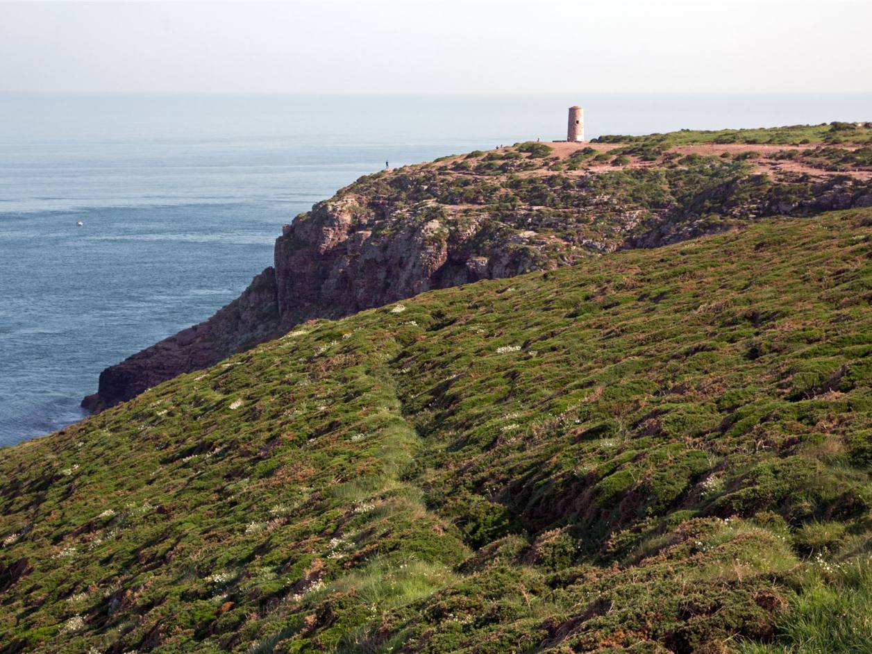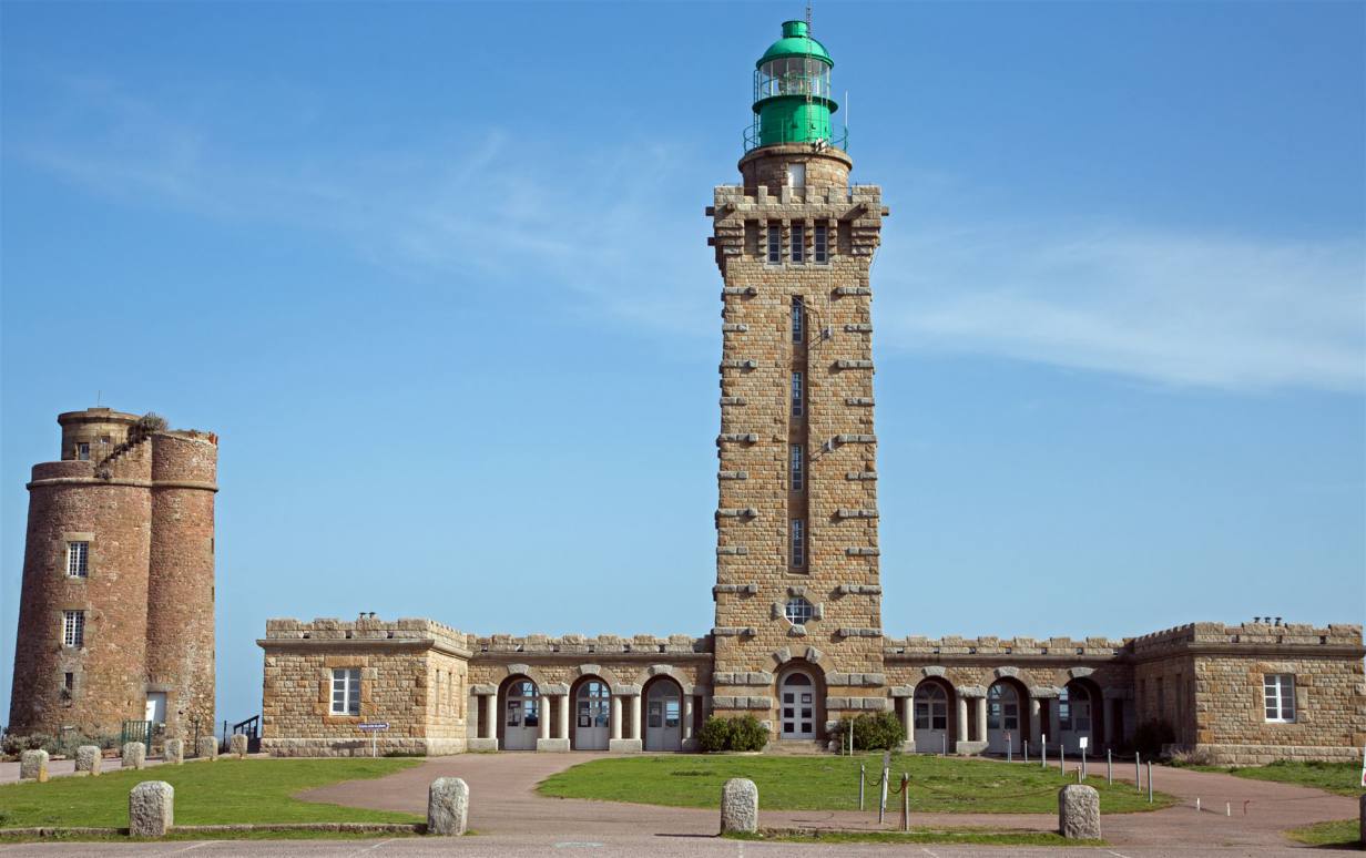 Hunderte seltener Vögel nisten in den Steilküsten am Cap Fréhel in der Nordbretagne. Neben Haubenkormoranen, Silbermöwen und Lummen finden auch etwa 20 Pinguine der seltenen Art Tordalk in den grau-rosa Sandsteinklippen Schutz. Das Vogelschutzgebiet 70 Meter über dem Meer zählt zu den eindrucksvollsten Naturdenkmälern der Bretagne. Über das gesamte Kap erstreckt sich eine 400 Hektar große Heidelandschaft, die je nach Saison gelb, rosa oder violett blüht. Majestätisch ragt der 103 Meter hohe Leuchtturm über dem smaragdgrünen Meer empor. Bei klarer Sicht ist sogar die Insel Jersey zu erkennen.