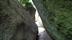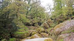 Als wir das Dorf erreichten, standen wir vor dem Abfluss des Sees, der etwas originell abgeleitet wurde. Wir sahen von weitem ein Restaurant das wir zum Mittagessen aufsuchten. Anschliessend spazierten wir zum Eingang des Nationalparkes. Der Nationalpark Regional d'Armorique ist ein 90'000 Hektar grosser 1969 geschaffener Nationalpark. Der Einstieg in Huelgoat ist einer der schönsten. Hier gibt es fantastische Felsenlabyrinthe, geheimnisvolle Grotten, dichte Wälder, reizvolle Rad- und Wanderwege.