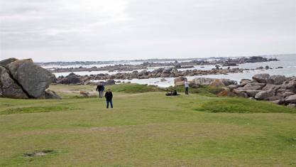 Gegen halb zehn fuhren wir der Küste entlang nach Cap Fréhel. Das Cap Fréhel ist eine Landzunge an der Côte d’Émeraude in der nordöstlichen Bretagne und eines der meistbesuchten Naturdenkmäler der Bretagne. Über 70 m ragt das Cap steil aus dem Meer und dient vielen Vögeln als Nistplatz. Nach dem bezahlen eines Eintrittes (Parkinggebühr) spazierten wir gegen die Leuchtürme.