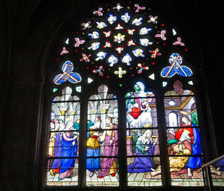 Unser nächstes Ziel war Tréquir. Das Städtchen liegt an einem Jaudy, weit ins Landesinnere ragender, den Gezeiten unterworfener Meeresarm. Im Mittelpunkt steht die Kathedrale. Es ist ein imposanter Bau mitten in der Stadt. Die Kirche hat viele wunderschöne Fensterscheiben. Rund um die Kirche ist die Altstadt mit vielen kleinen Gassen mit zum Teil alten Häusern. Wir wollten noch einen Garten besuchen, mussten aber feststellen, das dieser nur am Sonntag geöffnet ist.