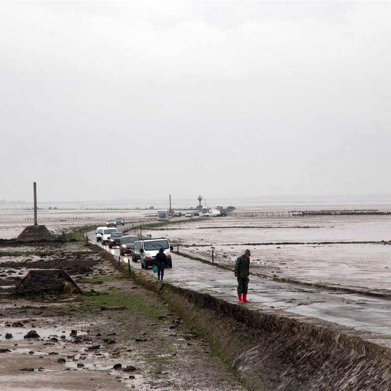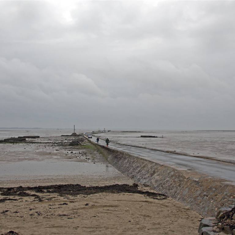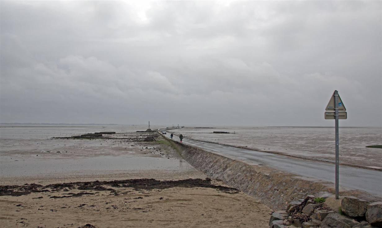 In der Nacht hatte es geregnet. Die Aussichten als wir aufstanden waren nicht ermutigend. So entschlossen wir den Platz zu verlassen und weiter zu ziehen. Das Highlight des Tages war die Meeresüberquerung "Le passage du Gois". Diese Meeresquerung ist einzigartig in Europa. Diese Verbindung ist 4.2 km lang und verbindet die Insel mit dem Festland.. Es gibt aber auch eine Brücke, der Weg ist aber einiges länger. Die Zeiten wann man den Weg benutzen kann hängt von den Gezeiten ab. Wir haben am Abend vorher nachgeschaut, wann Ebbe ist. Das Meer kann 11/2 Stunden vor bis 11/2 Stunden nach dem tiefsten Punkt passiert werden.