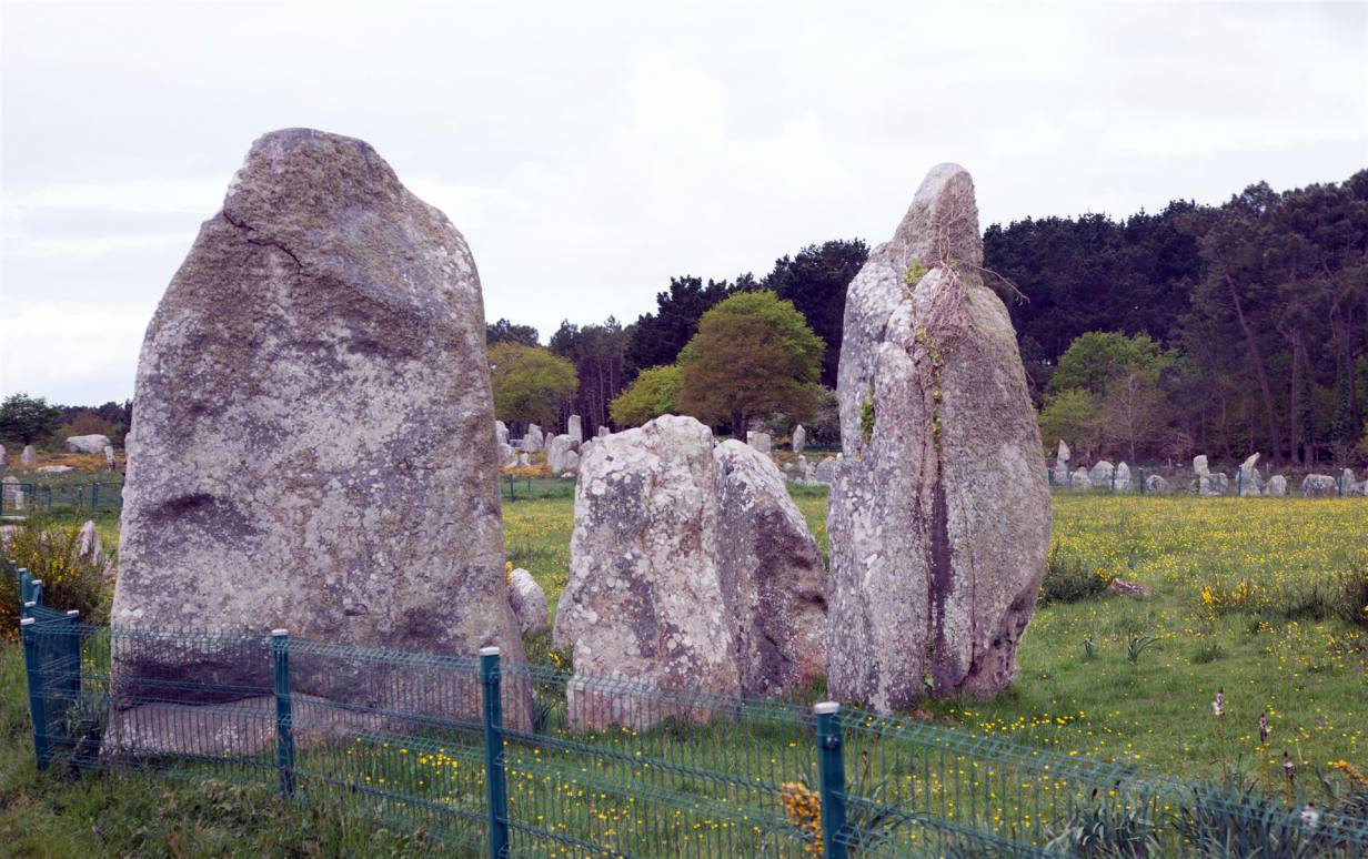 Als wir aufwachten war der Sturm vorbei. Es war noch bewölkt hatte aber immer noch Wind, was am Meer normal ist. Wir fuhren der Küstenlinie nach wieder zurück zum Festland. Unser erstes Ziel war Carnac. Wir kauften zuerst im Ort noch ein und fuhren dann zu den berühmten Hinkelsteinen. Carnac im Herzen der Bucht von Quiberon und nahe des Golfs von Morbihan ist weltweit berühmt für seine Menhire. Mit den sich über vier Kilometer erstreckenden 7000 Jahre alten Steinreihen lebt in Carnac die Antike.