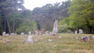 Alle 20 Minuten kam ein Zug, sodass wir nach rund einer Stunde wieder einstiegen und nun zu den Mehiren fuhren.Die 7000 Jahre alten Steinreihen von Carnac sind als Zeugnis der europäischen Vorgeschichte in der ganzen Welt bekannt. Das Besondere an den Megalithen von Carnac ist ihre unglaubliche Anordnung in gleichmäßig angelegten Reihen. Allein die beiden wichtigsten Stätten, Ménec und Kermario, zählen etwa 3000 Menhire. Die Steinreihen ziehen sich über fast 4 Kilometer. Mit dem Zug fuhren wir die ganze Strecke ab. Es war beeindruckend.