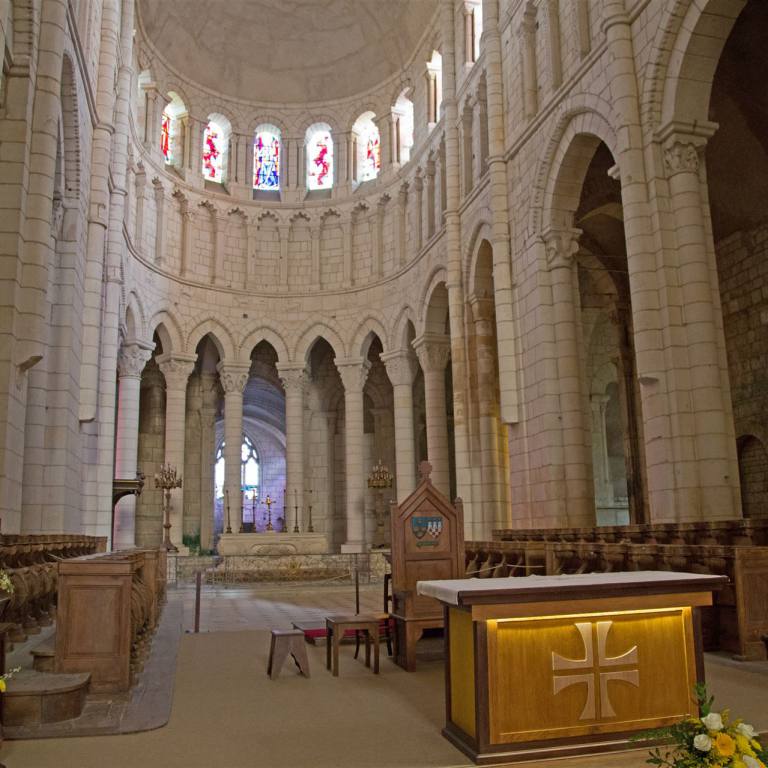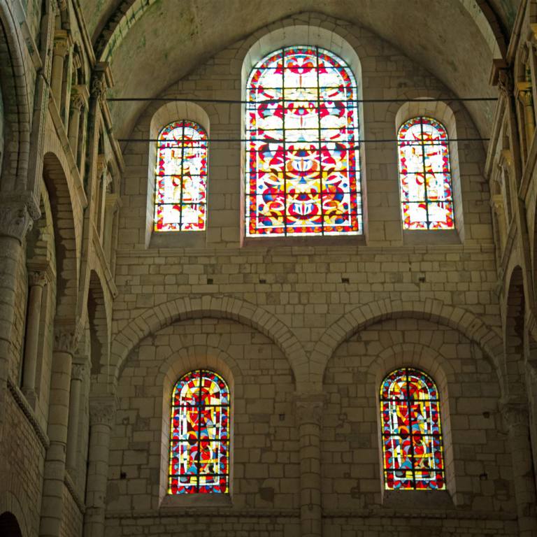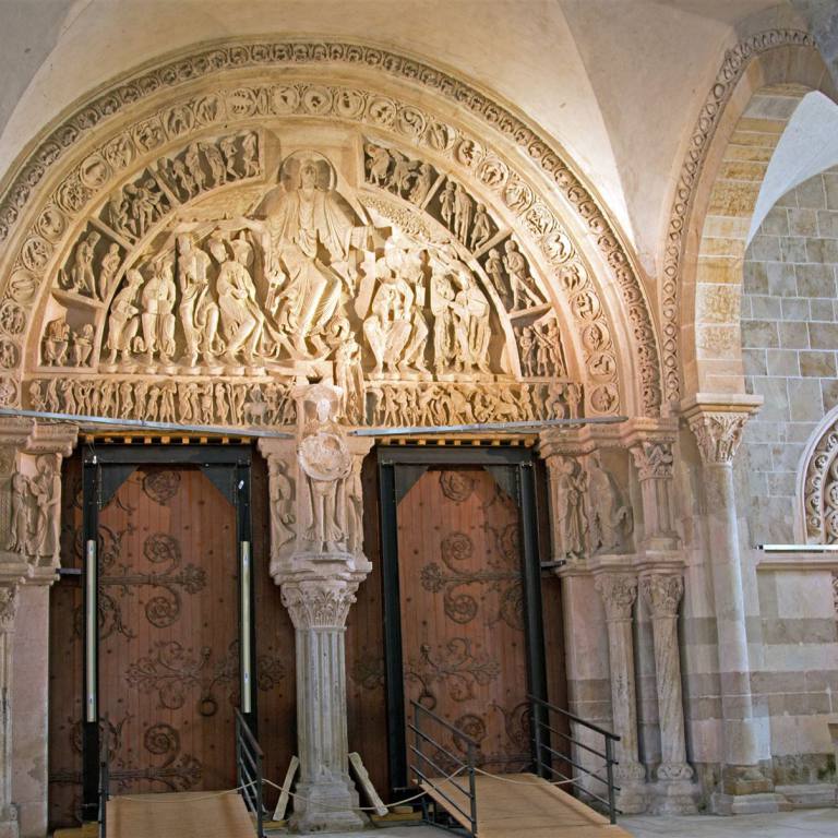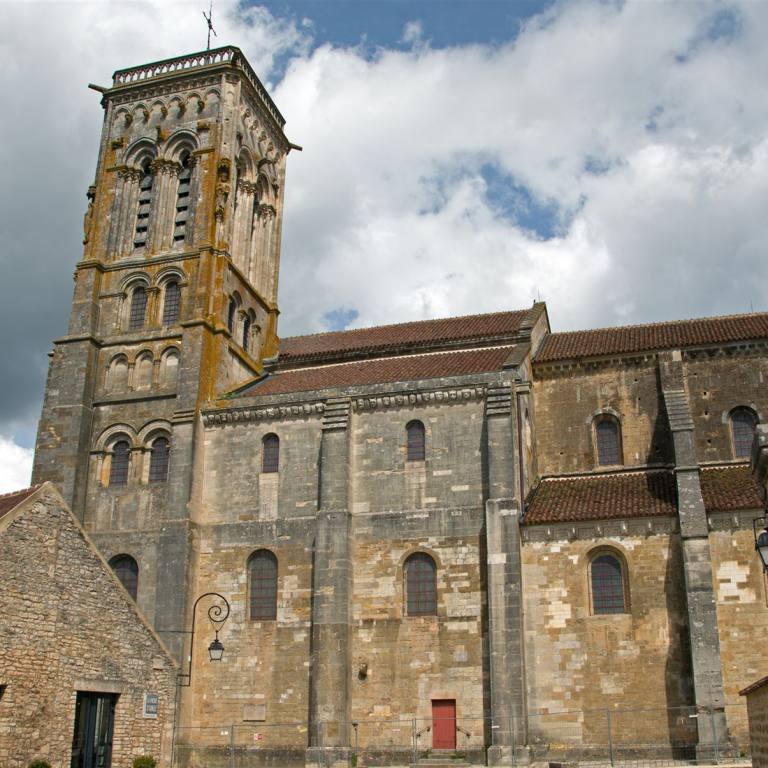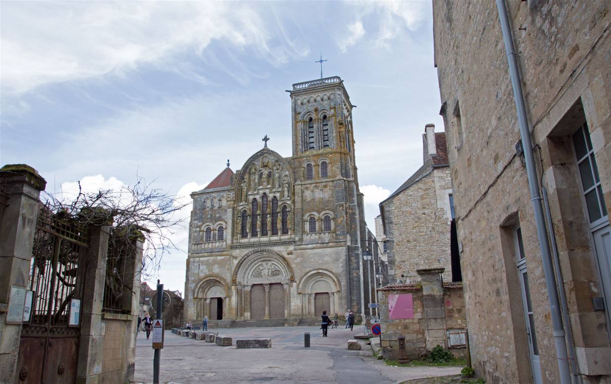1120 bis 1140 wurde das Hauptschiff im romanischen Stil errichtet. Erst danach entstand die große Vorhalle, deren mächtige Gewölbe auf ebenso beeindruckenden Säulen ruhen. Von hier aus betritt man das Hauptschiff durch ein großes Portal. Über dem Portal heißt eine beeindruckende Christusfigur mit weit ausgebreiteten Armen die Gläubigen willkommen. Im Inneren der Kirche angelangt, wird man sofort von der einzigartigen Atmosphäre ergriffen, die durch den Gegensatz zwischen dem dunklen, trutzigen Langschiff und dem jüngeren, hellen Chor entsteht. Denn letzterer wurde zusammen mit dem Querschiff erst von 1185 bis 1215 im lichteren Stil der Frühgotik erbaut. Wie bedeutend Vézelay einmal war, zeigt u. a. ein Blick in die Historie. Kaum war das Langhaus fertiggestellt, rief Bernard von Clairvaux im Auftrag des Papstes und in Anwesenheit von König Ludwig II, Königin Eleonore von Aquitanien und vieler Großen des Reiches von hier aus zum Zweiten Kreuzzug auf. Und das vor Tausenden von Gläubigen, die gar nicht alle in die Kirche passten und sich auf dem Hügel draußen drängten. Vézelay wurde Zentrum für Pilger und Ritter gleichermaßen. Ihren unermesslichen Ruhm verdankte die Basilika damals vor allem auch der Reliquienverehrung.