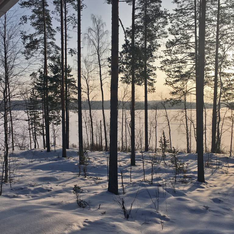 Es sieht jeden Morgen ähnlich aus. Grau in Grau aber wunderschöner Pulverschnee. Der See tief gefroren. So wurde es ein weiterer Arbeitstag. Ich wollte noch die Kleiderschränke zusammen stellen. Wir machten nochmals einen Anlauf und fuhren nach Imatra. Weder beim Eisenwaren Geschäft noch in der Stadt fanden wir die gesuchten Gegenstände. Dank eines Hinweises von Cousine Heelevi fanden wir ein Lampengeschäft und darin eine Lampe für Tuulia. Wir zogen ohne Möbel wieder ab und fuhren die 60 km nach Hause. Wenigstens haben wir wieder einige Kleinigkeiten gefunden. Ein Highlight stand noch bevor. Wir wollten heute die Sauna einheizen. Es war inzwischen eisig Kalt geworden. Da kam die heisse Sauna gerade richtig. Als ich in den Schnee ging und die Türfalle von Aussen fasste blieb ich direkt kleben. Zum Glück zog ich schnell weg als ich das merkte. Es war herrlich bei diesen Temperaturen die warme Sauna zu geniessen.