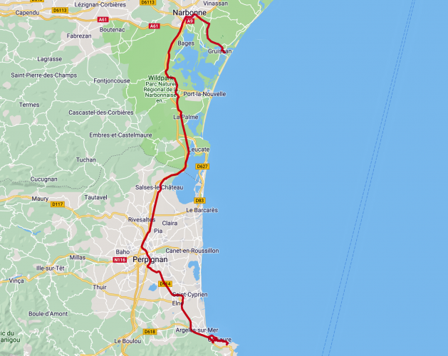 Gruissan - Collioure /Argeles sur Mer > 90 km