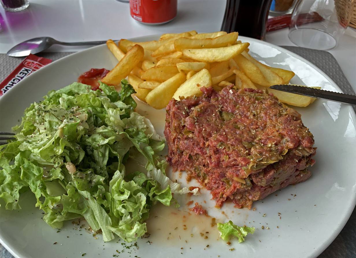 Alls wir zum Platz zurückkamen benutzen wir die Gelegenheit, das es bereits nach 12.00 Uhr war, um Mittag zu essen. Die Auswahl im Camping Restaurant war gross. Ich entschied mich für ein Tartar was die richtige Wahl war. Ich habe bis heute kein so gutes und vor allem auch grosses Stück Fleisch bekommen.