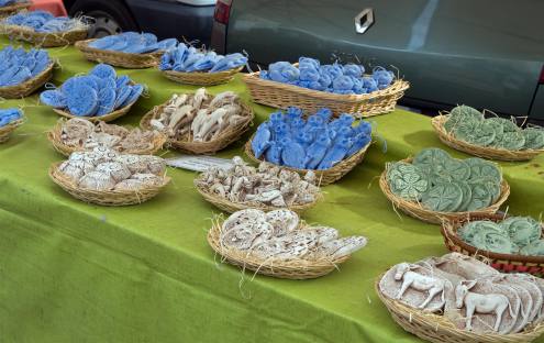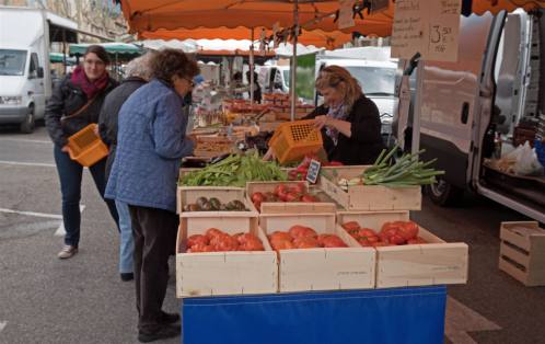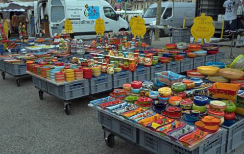 Nach dem Frühstück machten wir uns nochmals auf den Weg in das Städtchen. Heute war Markttag. Es herrschte ein emsiges Treiben, kamen doch die Einheimischen zum Gosseinkauf in die Stadt. Nichts, was es hier nicht gibt, und im größten und breitgefächerten Ausmaß, schlicht alles was die Provence zu bieten hat und noch viel mehr. Überhaupt den will ich sehen, der hier ohne etwas zu erstehen den Marktplatz verlässt. Und wir sprechen hier von einem Markt, der sich im ganzen Zentrum der Kleinstadt Nyons verteilt. Es gibt alles, was das Herz begehrt. Selbstredend die Köstlichkeiten, für die Nyons weit über die Grenzen Frankreichs bekannt ist: sein Olivenöl. Aber auch Gewürze, Knoblauch, Olivenbäume, Obst, Gemüse, Meeresfrüchte, Käse, Wein, Porzellan, provenzalische Stoffe, Schuhe, Schmuck, Schnickschnack usw. Die Provence in all ihrer Üppigkeit!. So deckten auch wir uns ein mit frischen Köstlichkeiten.