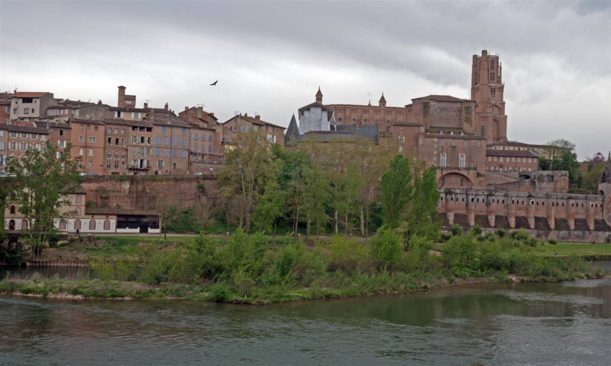 Da das Wetter nicht berauschend und kalt. Da wir auf dem Campingplatz waren habe ich auch in aller Ruhe Ent- und Versorgt. So sind wir wieder einige Tage Clean. Da unser Kühlschrank leer war ergab sich auch noch, wenige Kilometer ausserhalb der Stadt, den Einkauf zu betätigen. Da die Supermarché unendlich gross sind ist schnell mindestens eine Stunde vorbei. So war es bereits mittags vorbei als wir losfuhren. Auf der D118 ging es gut vorwärts. Die Strasse ist breit und schlängelt sich durch die beeindruckende Landschaft. Wir wollten noch zwei kleine Dörfer unterwegs anschauen was aber aufgrund schlechter Parkierungsmöglichkeiten fallen gelassen wurde. Wir erreichten gegen Abend jedenfalls Albi. Die Stadt liegt rund 80 Kilometer nordöstlich von Toulouse in der Mitte Südfrankreichs. Durch Albi fließt der Fluss Tarn. Ich hatte einen Stellplatz an der Grenze zur Stadt ausgewählt. Als wir uns dem Platz näherten und glaubten das ist er, weil einige alte Wohnmobile dastanden, erschraken wir. Eine riesige Kläranlage stand daneben. Das kann es doch nicht sein ? Ein Blick auf mein Navi sagte mir aber immer weiter fahren. Auf der linken Seite kommt ein Friedhof und rechts davon ein komplett neu gestalteter wunderschöner Platz. (Gebührenfrei) Wir waren nicht alleine. Es standen schon etwa 10 Franzosen am Platz. Da Tuulia nicht weit laufen wollte (konnte) erkundete ich alleine die Stadt.