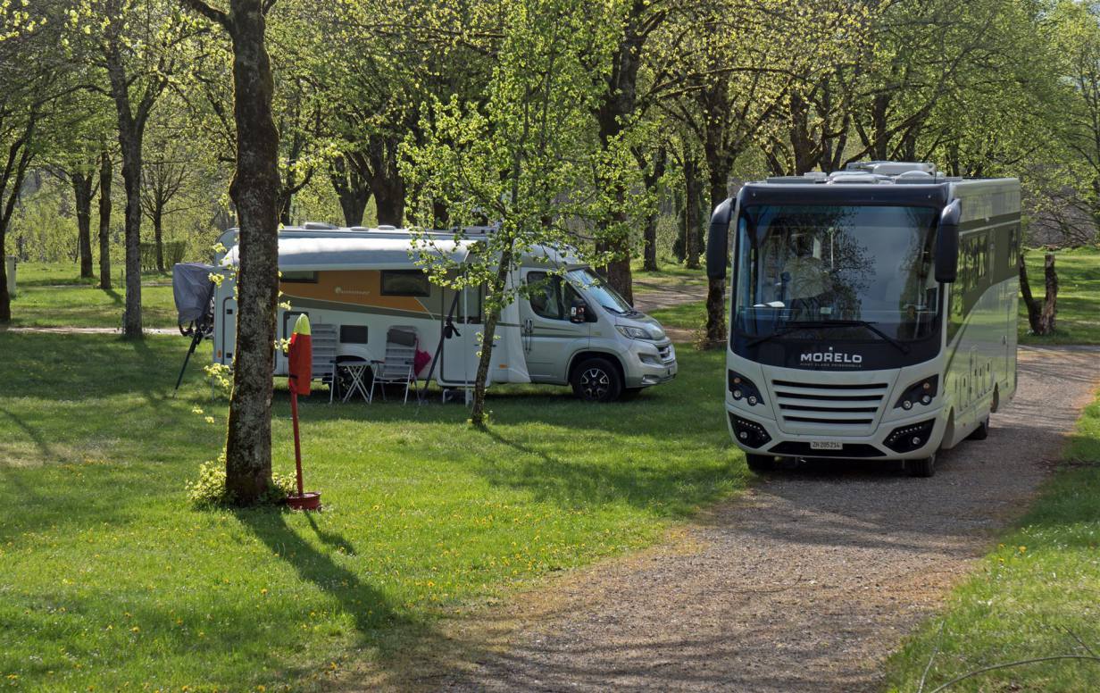 Nach einer ruhigen Nacht zog es uns wieder weiter Richtung Osten. Über gute Strassen mit wenig Verkehr war Champagnole unser nächstes Ziel. Wir haben uns mit Nelly und Rolf verabredet. Sie sind bereits seit zwei Tagen auf dem Campingplatz. Kurz vor Mittag trafen wir dort ein. Ein freundlicher Platzwart machte mich darauf Aufmerksam, dass es nicht ratsam sein in die Wiese zu fahren. Es kommt Regnen, dann könne ich nicht mehr raus. Also wies er mir einen Platz auf der befestigten Strasse zu direkt vor Rolf. Der Campingplatz CAMPING DE BOYSE befindet sich in Champagnole im Departement Jura, in Burgund-Franche-Comté. Er befindet sich in 200 m vom Fluss d'Ain, in 2 km vom Wald. Zur Zeit ist er fast leer. Die Plätze sind wunderschön mit Bäumen gesäumt und spenden im Sommer Schatten.