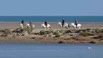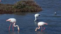 Auf dem Rückweg war es dann Zeit für Mittagessen. Etwas ausserhalb der Stadt fanden wir ein gutes Restaurant mit heimischer Küche. Es gab natürlich allerlei vom Fisch. Wir genossen die Frische der Speisen. Nach einer kleinen Pause im Wohnmobil machte ich mich mit dem Velo auf die Reise in die Camargues. Das 13000 Hektar große Naturschutzgebiet im Herzen der Camargue ist eines der größten Feuchtreservate Europas. Sein immenses Gelände erstreckt sich in einem Stück zwischen den Gemeindebezirken Arles und Saintes Maries de la Mer und genießt vollkommenen Schutz. Die Originalität und die internationale Bedeutung des Naturschutzgebiets liegen in der Vielfalt der dort vorliegenden Lebensräume und der letztere bewohnenden Arten (darunter insbesondere 276 Vogelarten, von denen 258 unter Naturschutz stehen), sowie in dessen ökologischen Abläufen begründet. Ich fuhr mit dem Fahrrad rund zwei Stunden durch das Feuchtegebiet mit wunderbaren Aussichten auf die Natur. Immer wieder sah ich grosse Mengen von Flamingos, die das Wasser durchsiebten nach Fressbarem.
