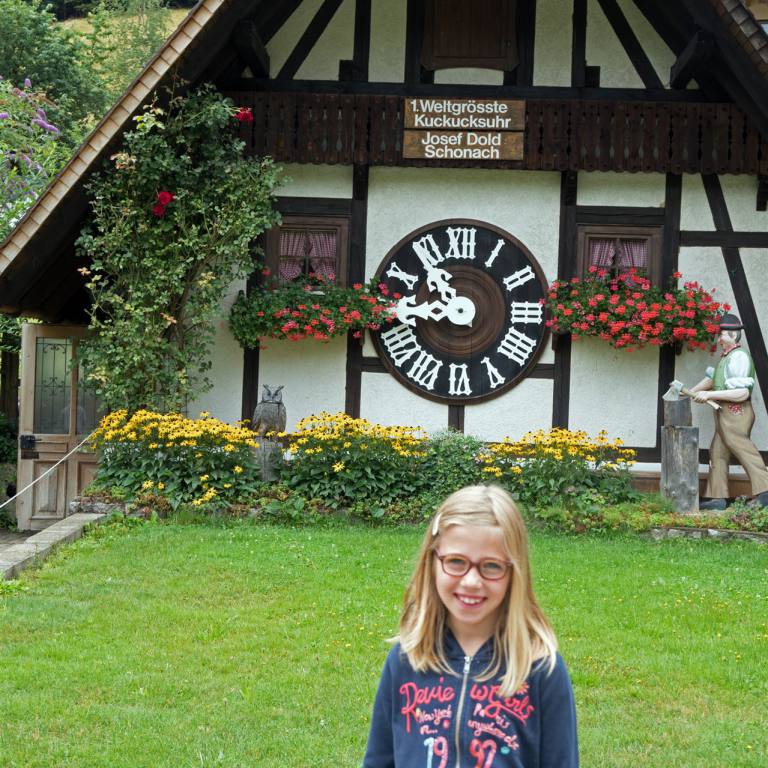 Auf dem Rückweg machten wir noch eine kurze Pause bei einem schönen Haus indem allerlei Souvenirs und vor allem natürlich Kuckucksuhren verkauft werden. Schon früher suchten die Bewohner des Schwarzwaldes einen Nebenerwerb, weil sie in der Regel von den kargen Erträgen der Landwirtschaft ihre meist sehr großen Familien nicht ernähren konnten. So begann man etwa ab dem Jahr 1640 – also lange bevor Karl Benz seine erste Motorkutsche baute – mit der Herstellung von einfachen hölzernern Uhren, die zunächst nur mit einem Zeiger die Zeit anzeigen konnten. Etwa 100 Jahre später wurde im Schwarzwald die erste Kuckucksuhr gebaut, die innerhalb weniger Jahrzehnte einen unglaublichen Siegeszug durch die ganze Welt antrat und bald Tausenden von Menschen Arbeit und Brot gab. Die traditionelle Uhrmacherei ist im Schwarzwald bis heute hauptsächlich in den Orten Triberg, Schönwald, Furtwangen, St. Georgen und in der Gegend um Neustadt erhalten geblieben.