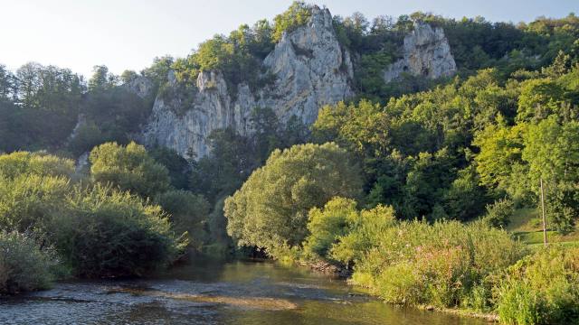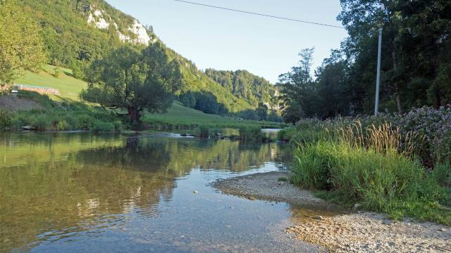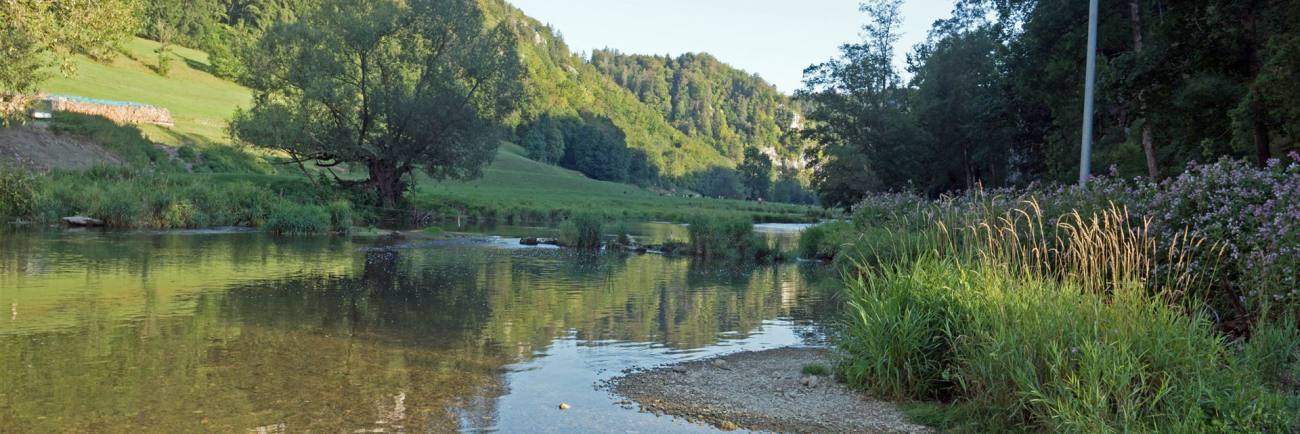 Abfahrt war gegen 09.30 Uhr. Wir hatten nur eine kleine Strecke vor uns. Sie führte aber durch wunderschöne hügelige Landschaften. Der Stellplatz in Beuron ist relativ neu mit grosszügigen Parzellen und Grasabtrennungen. Er liegt praktisch mitten in dem Städtchen und beim Kloster. Nach der Ankunft suchten wir uns ein Restaurant zum Mittagessen. Gesättigt und zufrieden machten wir uns auf den Weg die Kalorien wieder abzubauen. Mit dem Fahrrad fuhren wir zuerst auf der falschen Seite der Donau, was dann abrupt endete mit einer Sackgasse. Also wieder zurück ins Dorf und auf die andere Seite. Ein breiter Weg führte uns der Donau, die sich durch die Gegend schlängelte, entlang. Dazwischen gab es etwas tiefere Stellen wo man auch Baden konnte. Wir fuhren den gleichen Weg wieder zurück.