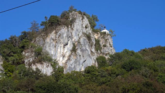 Nach der Installation und einem Begrüssungsapero machten wir uns auf zu Fuss in den Ort zu laufen. Wir hatten Hunger und freuten uns auf einheimische Kost. Nach rund einer halbe Stunde, meistens der viel befahrenen Strasse entlang, kamen wir ins Zentrum. Nach unserem Plan soll es vier Restaurant haben und ein Kebab Restaurant. Der erste Versuch misslang. Gerade Ferien und heute sowieso geschlossen sagte uns der Wirt, der zufällig auf der Terasse stand. Aber eine Pizzeria etwas weiter vorne ist vielleicht offen. Fehlanzeige. Es gibt zwei weitere Restaurants die so wie es aussieht schon länger geschlossen sind. Es verbleibt das was wir in keinem Fall wollten. KEBAB. In der Gartenwirtschaft mit viel LKW Verkehr war nicht besonders gemütlich, aber der Innenraum war gesperrt. Wir bestellten irgend einen Spiess mit Pommes und Salat. Bekommen haben wir etwas geschnetzeltes mit den Zutaten. Es war nicht schlecht, aber wir haben uns doch etwas anderes vorgestellt. Wenn man Hunger hat isst man fast alles. Gesättigt aber nicht unbedingt zufrieden marschierten wir wieder zurück. Nun hatten wir einen Schluck Marillenbrand verdient. Der erste etwas abenteuerliche Ferientag neigte sich, bei einem schönen Sonnuntergang, dem Ende entgegen.