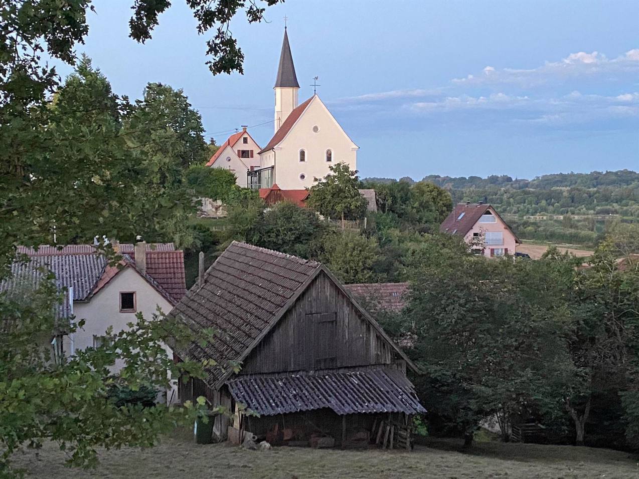 Noch einige Informationen zu Ablach. Das Dorf liegt am gleichnamigen Fluss Ablach im Ablachtal, das durch eiszeitliche Gletscher geformt worden ist. Ablach liegt am südlichen Rand des Naturparks Obere Donau. Überragt wird der Ort von der Katholische Pfarrkirche St. Anna. Sie ist weit vom Tal ersichtlich. Der Chor und der Turm stammen aus dem 17. Jahrhundert. Das Schiff wurde Anfang des 18. Jahrhunderts erbaut und im 19. Jahrhundert erweitert. Ihren Innenraum zieren zwei Holzbildwerke der Spätgotik. 1763 wurde das Langhaus der Kirche geweiht. Die 1759 gegründete Annabruderschaft erhielt noch im gleichen Jahr von der Fürstin Maria Theresia von Hohenzollern-Sigmaringen 60 Gulden zur Errichtung eines privilegierten Anna-Altars, in dem die Reliquien des heiligen Joachim und der heiligen Anna eingeschlossen wurden. Die Renovierungsarbeiten wurden im September 2010 mit der Weihe des Kirchplatzkreuzes abgeschlossen. Bevor es ganz Dunkel wurde nahmen wir den Weg abwärts zum Campingplatz.