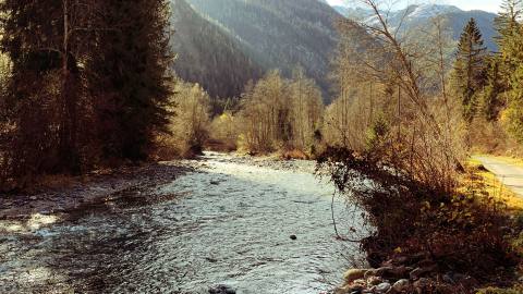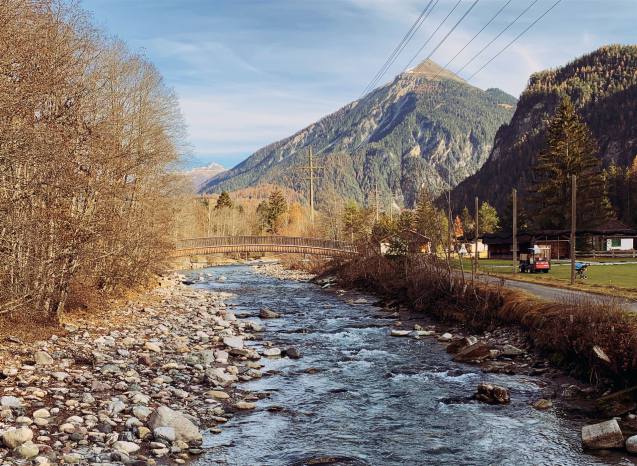 Nachdem wir einen Zug der Rhätischen Bahn auf der Fahrt über das Viadukt fahren sahen wanderten wir weiter. Jetzt ging es der Albula entlang langsam zurück. Unterwegs hatte es einen weiteren Bauernhof, der heimische Produkte verkaufte. Der Betrieb bietet auch Events an. Wir kauften im kleinen aber schön eingerichteten Laden alte Kartoffeln, Käse und Salsiz. Im Schatten, da die Sonne schon tief stand führte der Weg durch einen schönen Wald wieder zurück zu Bad wo unser Wohnmobil geparkt war.