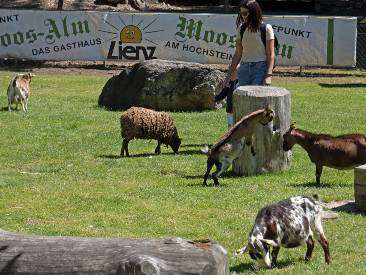 Wir durchquerten die Stadt und gelangten zur Talstation des Lienzer Schlossbergs. Einen Tag lang eintauchen in eine ganz andere Welt. Voller Spaß und Abenteuer mitten in der Natur. Durch das vielfältige Angebot bietet der Schlossberg für Groß und Klein, für die ganze Familie, spannende, abwechslungsreiche und erholsame Stunden. Mit der Schlossbergbahn der Lienzer Bergbahnen geht es direkt von der Talstation Hochstein auf die Moosalm. Es war bereits 11.00 Uhr und Zeit zum Apero. Wir genossen den herrlichen Tag inmitten der hohen Berge. Es ist ein interessanter Ort für Kinder. Einerseits kann man mit dem Alpine Coster wieder zurück Rodeln zur Talstation, andererseits hat es einen wunderschön angelegten Park mit Tieren allerart. Schnatternde Gänse, kichernde Ziegen im Streichelzoo, Hühner, Ponys usw. usw. Ein Paradies für Kinder. Die Steigerung ist ein riesiger Klettergarten in den Bäumen.