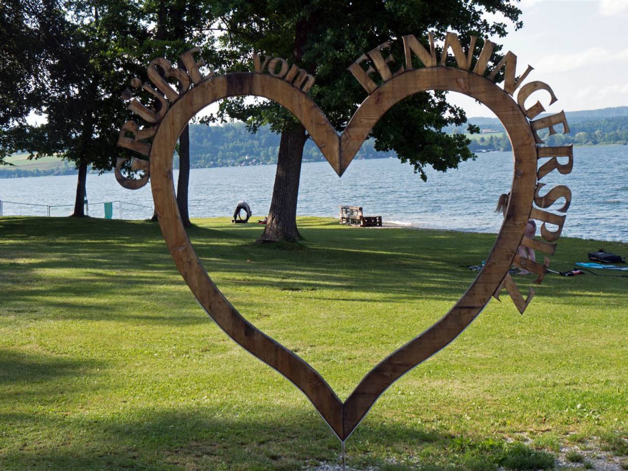 Wir haben noch lange die Aussicht und die warme Sonne am Strand genossen. Ich habe dann mit Tuulia noch einen Spaziergang dem See entlang gemacht. Es gibt einen wunderbaren Seeweg. Man kann rund um den See spazieren was aber dann zu Fuss doch etwas zu lang ist. Auf dem Rückweg sind wir noch kurz im Camping Restaurant eingekehrt und haben eine Weisswurst und Leberkäs gegessen. Rechtzeitig konnten wir das Wohnmobil beziehen ehe es nun stark zu Regnen begann.