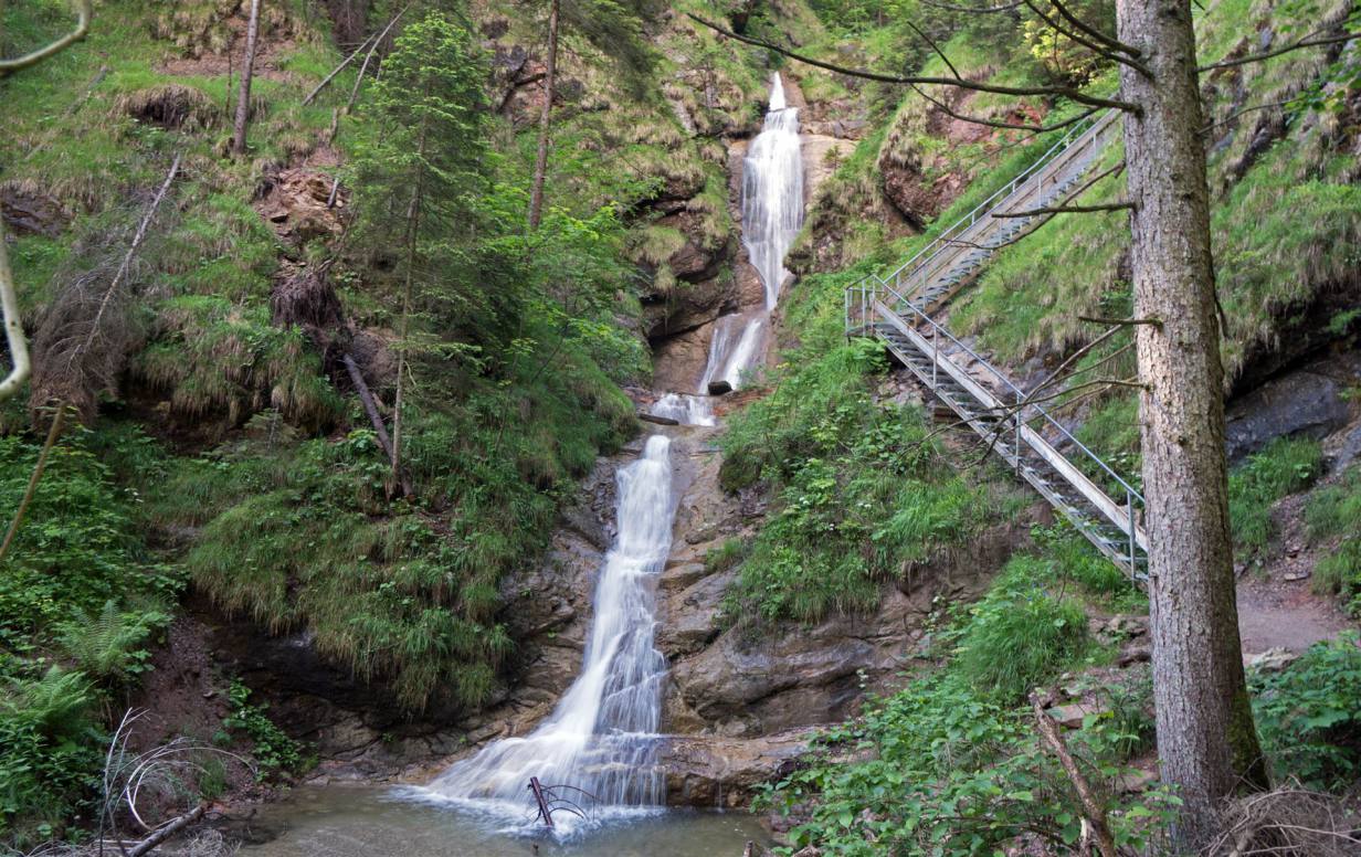 Nach einer ruhigen Nacht machten wir am Morgen noch "Frühsport". Wir wanderten ein wenig oberhalb des Stellplatzes Richtung Berge. Wir kamen in den Wald auf einem schönen Weg. Dann ging es rechts ab durch einen schmaleren Pfad. Angeschrieben war die Strecke mit Wasserfällen. Das wollten wir sehen. Also ging es weiter des Weges. Um die Krümmung gebogen sahen wir den Wasserfall.