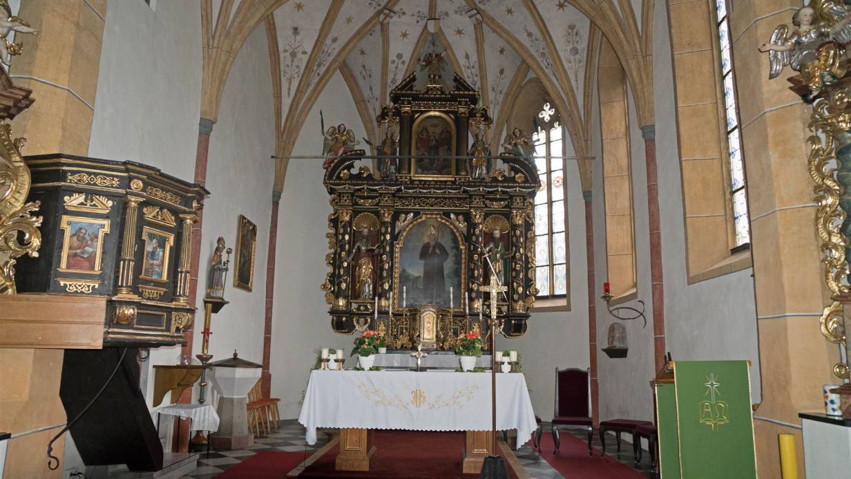Unser nächster Besuchsort war die Stadtpfarrkirche St. Andrä. Wir spazierten der Isel entlang auf einem wunderschönen Weg nördlich aus der Stadt. Die römisch-katholische Stadtpfarrkirche Lienz zu St. Andrä befindet sich auf dem Pfarrbichl auf 692 Meter Seehöhe. Es handelt sich im architektonischen Kern um einen gotischen Bau und wurde während verschiedenster Epochen mehrmals umgebaut. Sie ist die älteste Pfarrkirche in Lienz und eine der ältesten Pfarren Osttirols. Im hochaufragenden Pfarrturm befinden sich 7 Glocken aus der Gießerei Grassmayr zu Innsbruck. Diese wurden 1949/50 gegossen. Interessant ist hierbei, dass es zwei Weiheurkunden gibt. Eine vom 24. Juni 1949 und eine zweite Urkunde vom 4. Februar 1950. Der Grund: Die Glocken mussten zum Teil umgegossen werden, da sie im Klang nicht zueinander passten.
