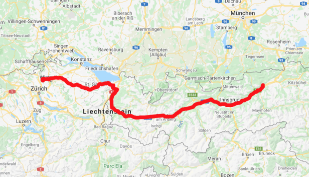 Treffpunkt 10.00 Uhr Raststätte Forrenberg. So war es abgemacht mit Nelly und Rolf. Pünktlich trafen wir uns am verabredeten Ort. Nach kurzer Begrüssung ging es los auf der Autobahn Richtung St.Gallen. Das Wetter hielt sich gut denn es war trocken mit bedecktem Himmel. Das änderte sich aber schlagartig als wir ins Rheintal kamen. Die Grenze war wie erwartet offen und unbesetzt. In Lustenau musste ich meine Go-Box aktivieren lassen, das sie wegen Nichtgebrauch gesperrt wurde. An einer Tankstelle wurde das schnell und unbüroktatisch erledigt. Ich bekam sogar (12.00 €) eine neue kleinere. Dann gings los auf die Arlbergautobahn. Nun begann es zu schütten. Es hatte zwar viel Verkehr aber er war flüssig. Es war langsam Zeit Mittag zu Essen. An einer Raststätte nach dem Tunnel verpflegten wir uns und mussten eine Maske anzuziehen. Nach der kurzen Rast ging es weiter wo wir dann auf der Umfahrung von Innsbruck in einen kurzen Stau gerieten. Gegen 16.00 Uhr erreichten wir dann unseren Stellplatz, der vor einem Campingplatz liegt.