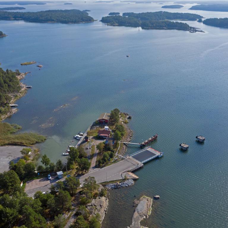 Gegen Mittag fuhr ich weiter auf der Ringstrasse. Die gut ausgebaute 180 windet sich durch Wald und Feld, links schimmert Wasser, alte Bäume prägen die Landschaft und man vergisst beinahe, dass man sich hier zum "Insel-Springen" in die Schärenwelt begeben hat. Nach rund 6 km weiss man wieder genau wo man ist, denn es steht die erste Fährpassage an. In 10 Minuten ist man schon wieder an Land. Die gelben Fähren die ich benutzte sind kostenlos, sie gehören zum Strassennetz.