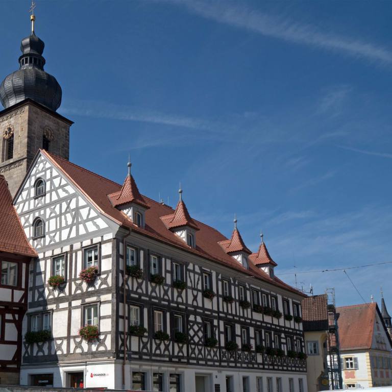 Nach einem guten Frühstücksbuffet pflegte ich noch die Homepage, während Tuulia eineinhalb Stunden Zeit zur Verfügung stand die Geschäfte der Innenstadt unsicher zu machen. Nachher schauten wir uns zusammen noch die Stadt an. Forchheim liegt an der Regnitz, am Main-Donau-Kanal und an der Wiesent. Die Regnitz verlässt Forchheim in nordwestlicher Richtung und mündet bei Bischberg in den Main. Forchheim ist im Westen vom Steigerwald und im Osten von der Fränkischen Schweiz eingerahmt und liegt in einer Tallandschaft. Der Ort Stadt hat eine sehr schöne Altstadt.