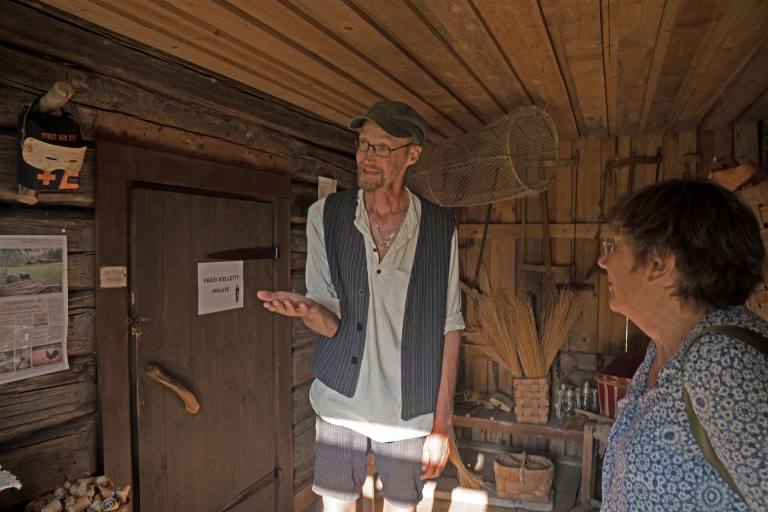Wir mussten eine Viertel Stunde auf die Fähre warten, da der Kapitän ein Pause machte. Dann ging es schnell weiter. Wir mussten pressieren, da das Museum das wir besuchen wollten um 18.00 Uhr schloss. Zuerst trafen wir unterwegs noch ein Restaurant im Freien, was wir als das Museum ansahen, war es aber nicht. Nochmals 2 km dann waren wir richtig. In der geschützten Bucht von Niinisaari liegt der Liehtalanniemi Museum Farm und Naturschutzgebiet, wo man eine Zeitreise in das Archipelleben der frühen 1900er Jahre und die Welt des letzten Gastgebers, Jalmari Reponen, unternehmen können. Der Hof verfügt über Schafe und Hühner, einen Gästepier, einen Platz für Paddler zum Landen, einen geführten Naturpfad und einen Baumbestand.