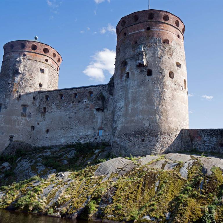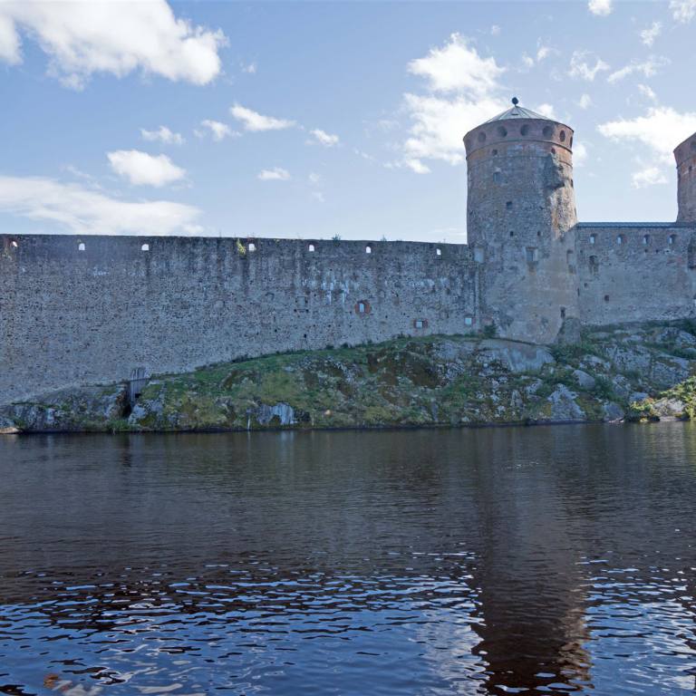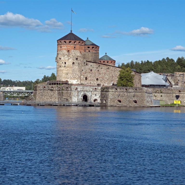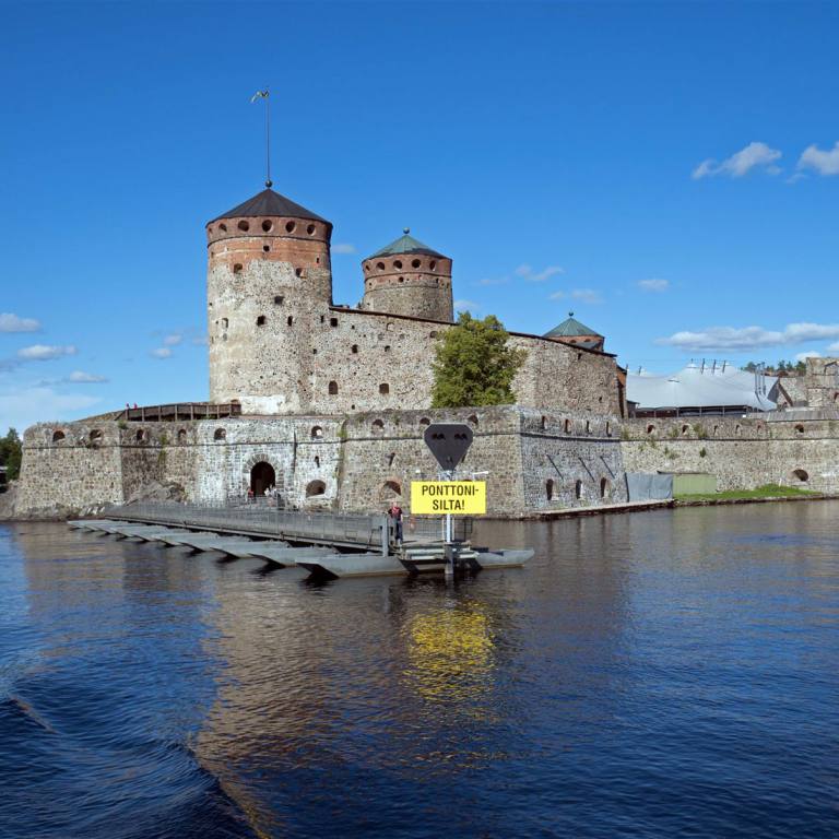 Das Schiff umrundete zuerst das Wahrzeichen von Savonlinna. Die Burg Olavinlinna die mitten im See liegt. Zum Betreten des Bauwerkes wird eine Art Schiffsbrücke jedesmal hin und her gefahren. Als der Bau der Burg Olavinlinna (dt. „Burg des Heiligen Olafs“) im Jahre 1475 begann, hat ihr Bauherr Erik Axelsson Tott beschlossen, eine starke Festung zum Schutz der strategisch wichtigen Region Savo erbauen zu lassen. Mithilfe der Burg wollte der Ritter und Staatsmann dänischer Herkunft die Angriffe der Russen aus dem Osten abwehren und dadurch die schwedische Herrschaft über die Region festigen. Die Geschichte der Burg Olavinlinna ist wohl eine Mischung aus mittelalterlichem Schwertgeklirr, Donnerhall der Kanonen und alltäglichen Beschäftigungen innerhalb der dicken Mauern.