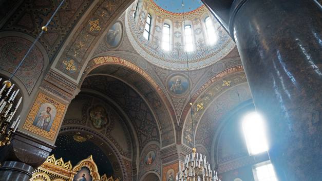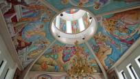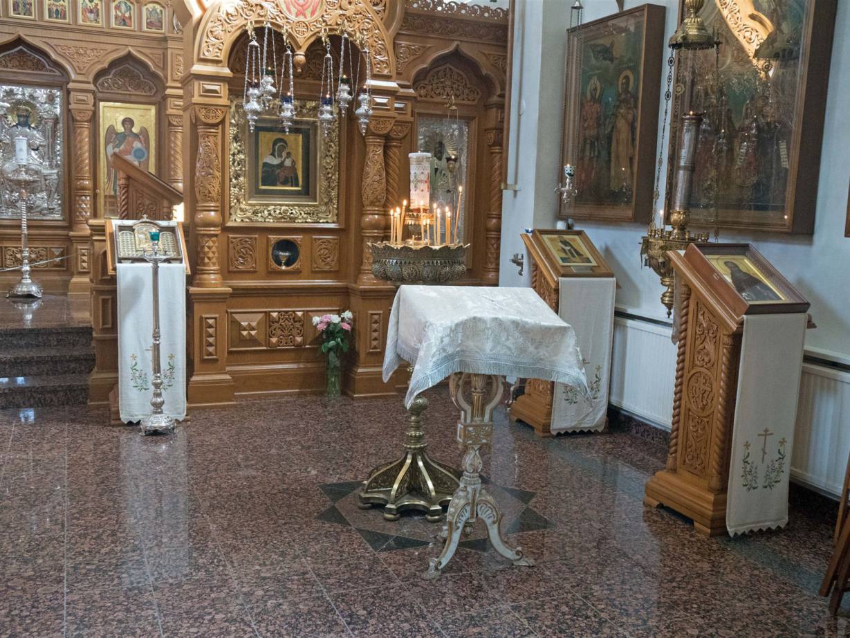 Die Glocken befinden sich nicht etwa unter der Hauptkuppel, sondern sie wurden in einem separaten Glockenturm untergebracht. Rund um die Kirche sorgt grüner Rasen für eine freundliche Atmosphäre. Eine weisse Bank lädt zum Verweilen ein. Im inneren der Kirche, die kostenlos betreten werden darf staunt man über die Einrichtung. Die orthodxe Kirche kann nicht mit der katholischen- oder evangelischen Kirche verglichen werden.