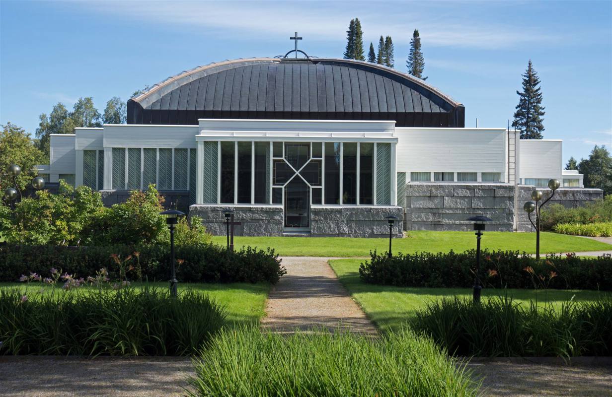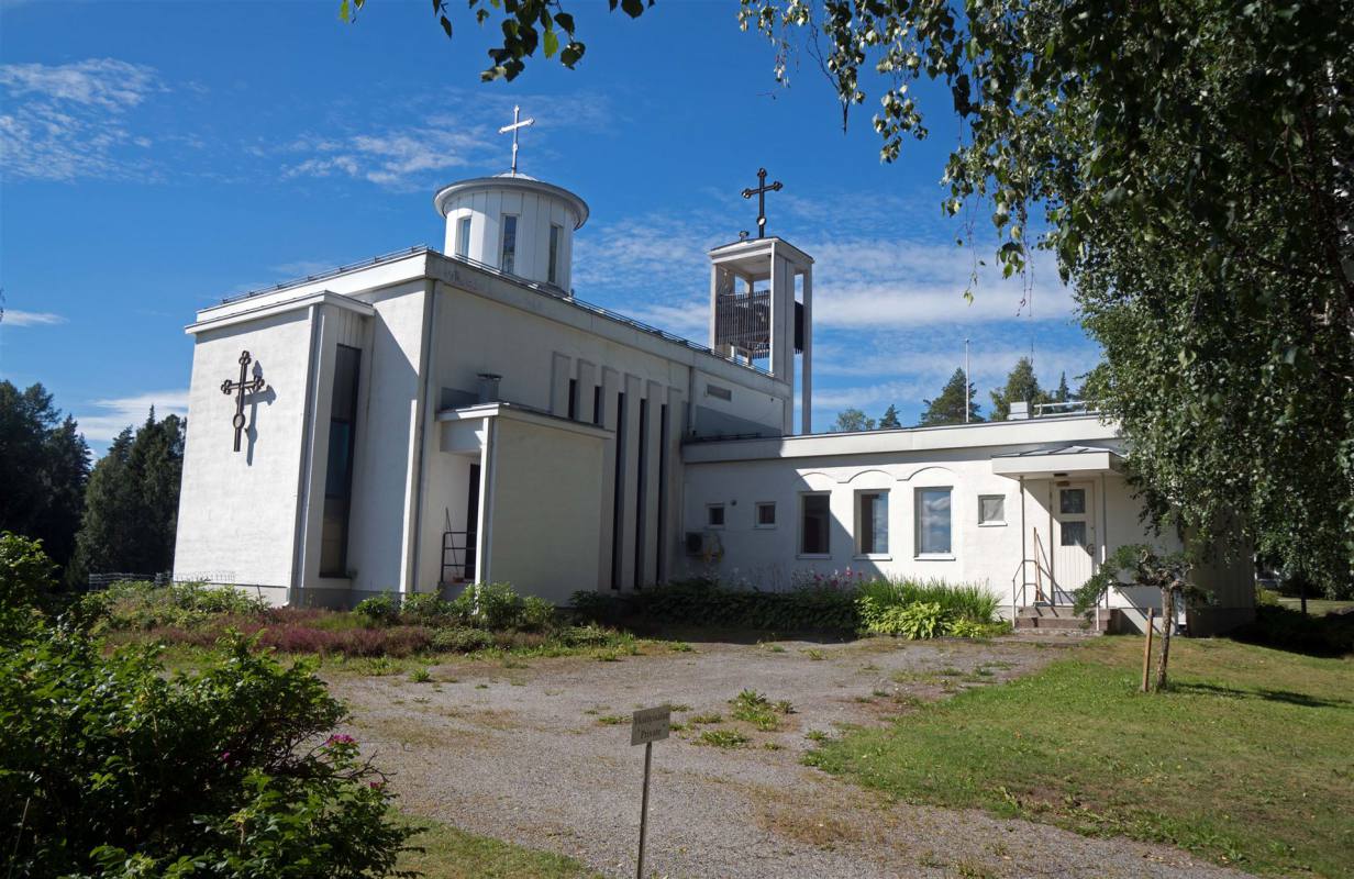 Es fiel uns schwer diesen herrlichen Uebernachtungsplatz zu verlassen. Aber wir haben noch einiges vor. Zuerst fuhren wir noch nach Lieksa um in der Stadt einen Rundgang zu machen. Kurz vor der Stadt hielten wir bei einer Kirche die direkt am Fluss liegt. Entworfen von Raili und Reima Pietilä , wurde es 1982 an der Stelle der alten Holzkirche erbaut, die 1836 von Carl Ludwig Engel entworfen und 1979 durch einen Brand zerstört wurde. Von dieser Konstruktion ist der Glockenturm erhalten. Die 36-Stufen- Orgel stammt aus der Kangasala-Orgelfabrik .
