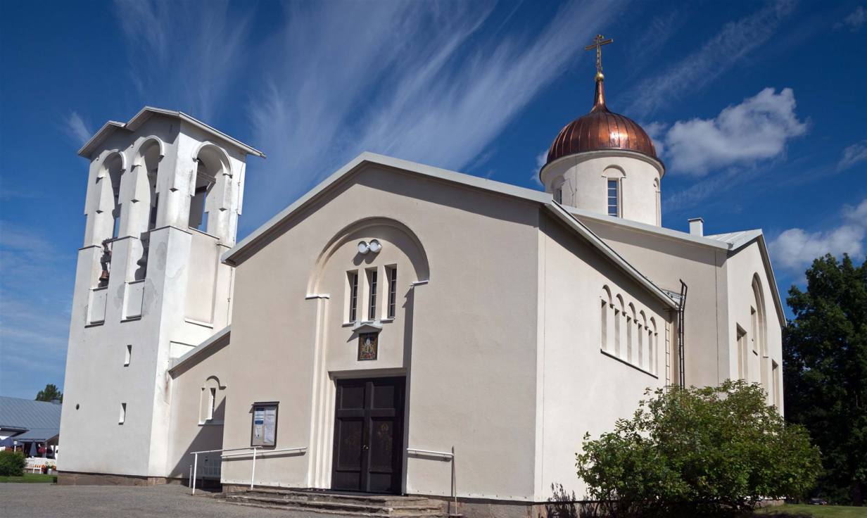 Nach kurzer Fahrt erreichten wir das einzige Finnische orthodoxe Männerkloster. Dieses gehört zum Ort Heinävesi also zur Landschaft Südsavo, auch wenn viele das Kloster bereits Nordkarelien zuordnen – was natürlich auch mit seiner Historie zu tun hat. Tatsächlich sind es nur wenige Meter bis nach Nordkarelien. Bei Anfahrt sieht man mehrere grosse Parkplätze. Dies soll ein Ort der Stille sein? Ein solcher Gedanke schiesst mir bei unserem Besuch direkt durch den Kopf. Doch ich keine Bange. Das Areal ist so groß und weitläufig, dass hier tatsächlich jeder sein ruhiges Plätzchen finden sollte. Man kommt über ein schönes Portal auf eine Alle von Bäumen gesäumt. Vorbei an diversen Wohngebäuden der Mönche geht es zur Hauptkirche des Klosters, welche mit Kuppeln im typisch orthodoxen Stil ausgestattet wurde, jedoch von außen betrachtet mit ihrem weißen Anstrich doch eher ungewöhnlich schlicht wirkt.