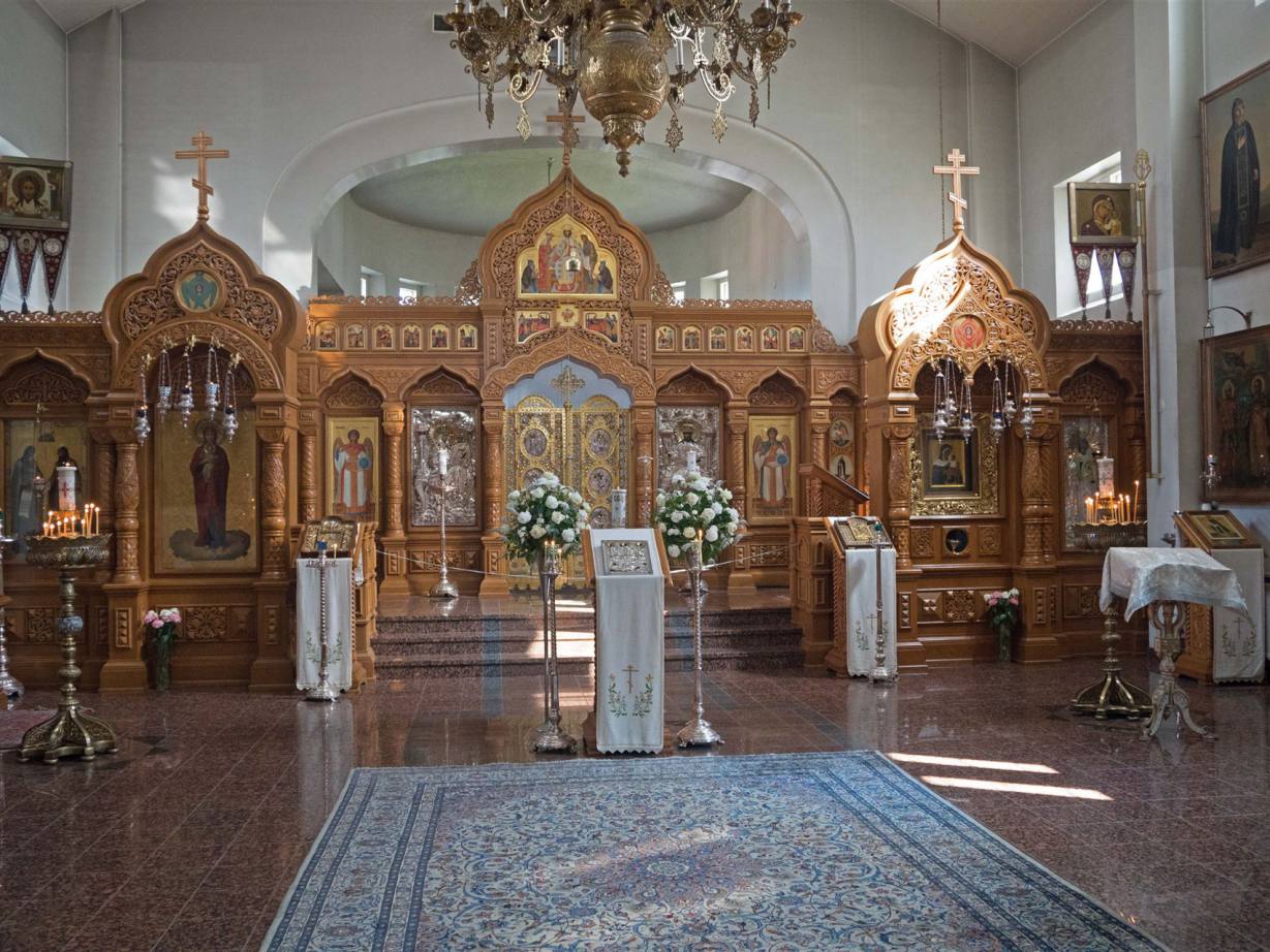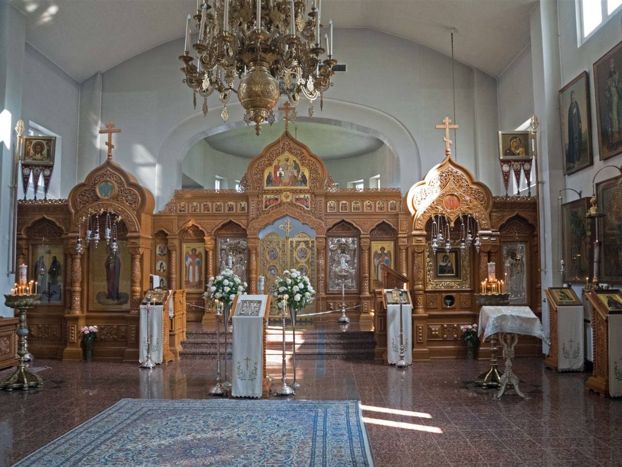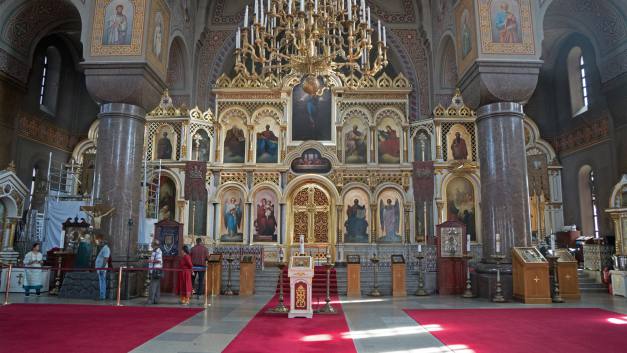 Es gibt weder Kirchenbänke noch Stühle, aber der gesamte Raum ist sehr prachtvoll ausgestattet. Vier, aus massivem Granit gefertigte Säulen tragen die Hauptkuppel, die wie ein sternenübersäter Himmel gestaltet ist. Zahlreiche bunte Mosaike schmücken die Innenwände. Ebenfalls typisch für eine orthodoxe Kirche sind die Ikonen, die religiösen Gemälde und die vergoldeten Sakramente.