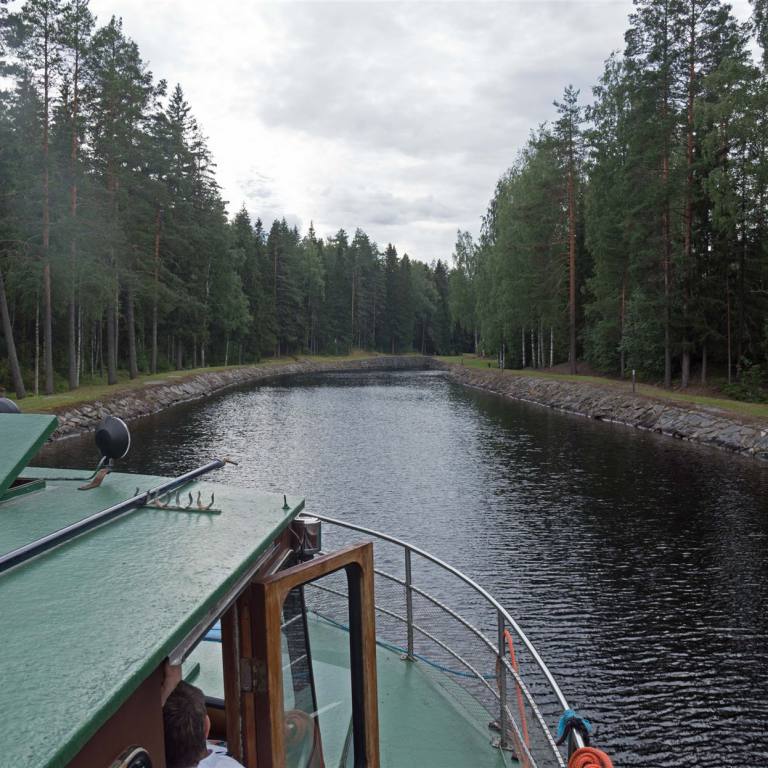 Ein Spaziergang über das weitläufige wunderschöne Gelände leistet einen Beitrag zur Entschleunigung. Wir schlendern über das Areal hinab zum idyllisch am See Juojärvi gelegenen Schiffsanleger des Klosters. Hier wird deutlich, weshalb sich die Mönche nach ihrer Vertreibung aus dem heute russischen Teil Kareliens gerade an diesem Ort niedergelassen haben. Wälder, Seen und Wiesen – eine Landschaft wie aus dem Bilderbuch. Ich versuche mir vor meinem inneren Auge auszumalen, wie wohl das einstige Kloster Valamo, das auf einer Insel im Ladogasee lag, ausgesehen haben mag. Am Schiffssteg war ein Ausflugsboot bereit mit Touristen auszulaufen. Wir nutzen die Gelegenheit zu einem weiteren Ausflug auf dem wunderschönen See. Es hat Inseln so weit das Auge reicht. Da es sehr viele Untiefen hat muss der Bootsführer nach den Markierungen navigieren um nicht einen knapp unter der Wasseroberfläche befindlichen Stein zu touchieren. Die Fahrt dauerte 2 Stunden und führte über eine Schleuse mit 8 m Höhendifferenz.