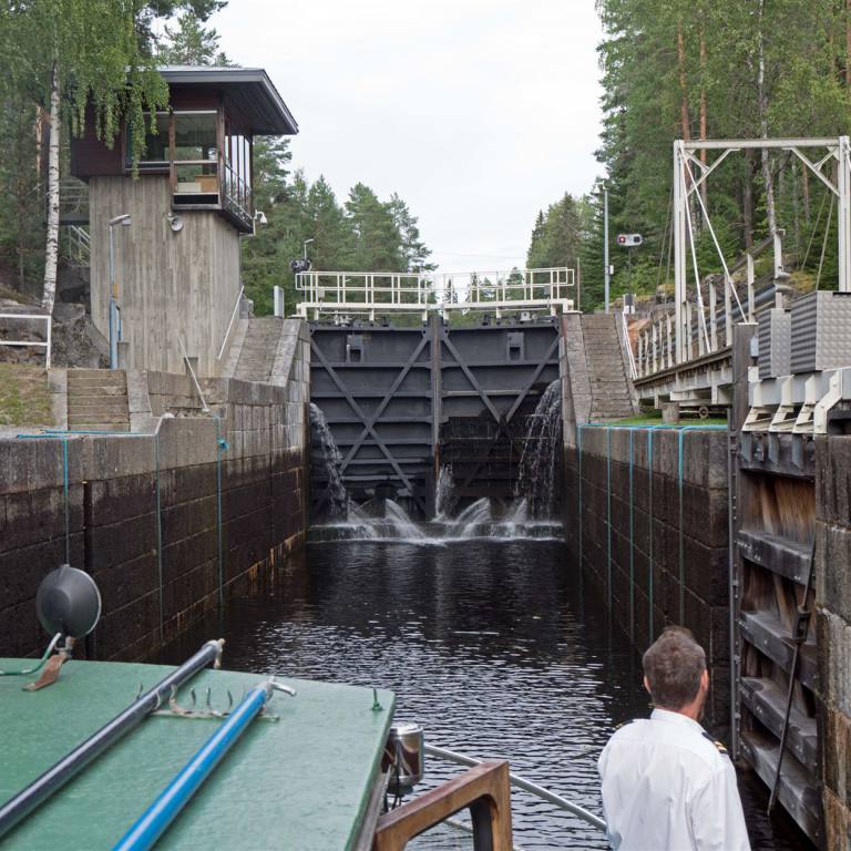 Nach dem Spaziergang gab es noch einen Kaffee vor einem alten Schiff. Es wurde Zeit weiter zu fahren. Wir hatten rund 50 km bis nach Varkaus. Die Industriestadt liegt in der Region Savo zwischen Kuopio und Savonlinna. Wir haben am Taipele Kanal den ersten Halt gemacht. Neben dem Kanal hat auch ein Museum mit einem kleinen Restaurant. Der Taipalekanal ist ein 500 m langer Kanal im Gebiet der finnischen Stadt Varkaus, welcher die Seen Unnukka und Haukivesi verbindet. Der Saimakanal wurde 1835 gebaut. Da die Schiffe immer grösser wurden musste neben dem Alten ein neuer gebaut werden. 1871 konnte der neue befahren werden. Nachdem die Sägewerkindustrie immer stärker wurde und der Transport von Holzwaren sich vermehrt hatte wurde der Kanal 1910 zu einem Flösserkanal umgebaut. Die 1967 gefertigte Grosschleuse ersetzte die Alten Kammern des Flösserknals.Heute ist sie 160 m lang, 13 m breit 4.35 m tief. 6500 Schiffe befahren jedes Jahr den Kanal.