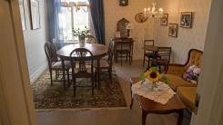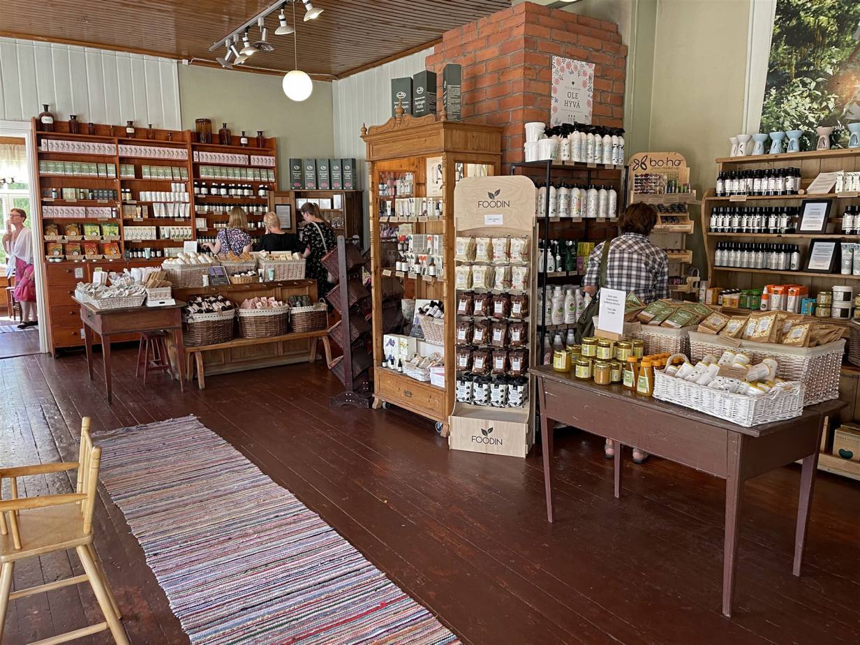 Wir haben noch Mittag gegessen im Flugplatz Restaurant und sind dann weiter gefahren. Tuulia wollte nach Hemeenkyrä. Frantsilan Kehäkukka am Ufer des Pappilanjoki ist ein beliebtes Ausflugsziel In den alten Schulgebäude aus dem Jahr 1875 gibt es ein charmantes Café, ein vegetarisches Restaurant im Bauernstil und ein Geschäft, wo man das ganze Jahr Bio Produkte kaufen kann. Die Auswahl des Ladens umfasst Produkte von Frantsilas Bio Kräuterfarm. Es gibt auch einen hübschen Garten mit allerlei Kräutern. Das war für Tuulia ein Genuss, geschweige dann noch den guten Kuchen im Café zu geniessen. Die Umgebung des Hauses ist ebenfalls ein Traum, liegt das Haus doch direkt am See.