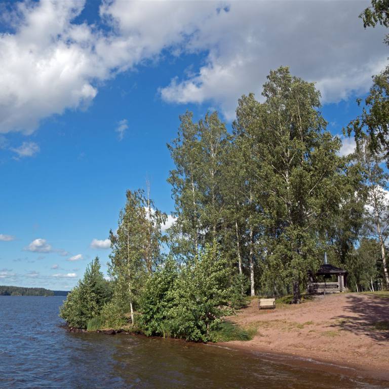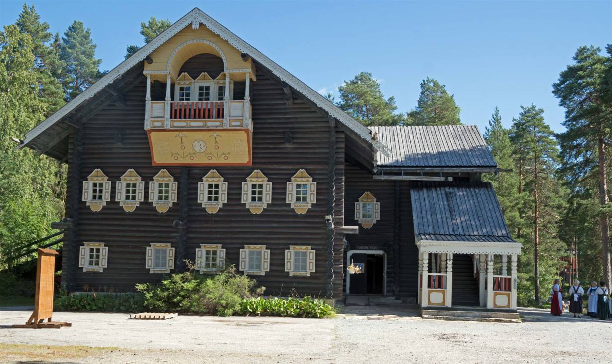 Nach einem kleinen Spaziergang fuhren wir weiter nach Nurmes. Sehenswert in dieser Ortschaft ist das wunderschöne Bomba-Haus und das dazugehörige karelische Dorf. Diese stehen für authentische karelische Kultur und traditionelle Bauweise. Davon zeugt jeder Baumstamm und jedes Häuschen. Das Bomba-Gelände bietet allerhand verschiedene Übernachtungs-möglichkeiten und Restaurants sowie ein Spa-Hotel, eine abwechslungsreiche Auswahl an erlebnisreichen Aktivitäten, einen Marktplatz, ein Freilufttheater und eine traditionelle orthodoxe Kapelle. In den kleinen Läden werden handgemachte Produkte, Souvenirs und lokale Erzeugnisse angeboten.