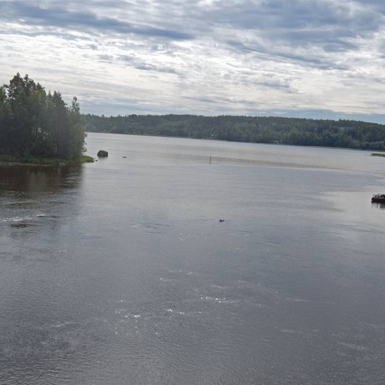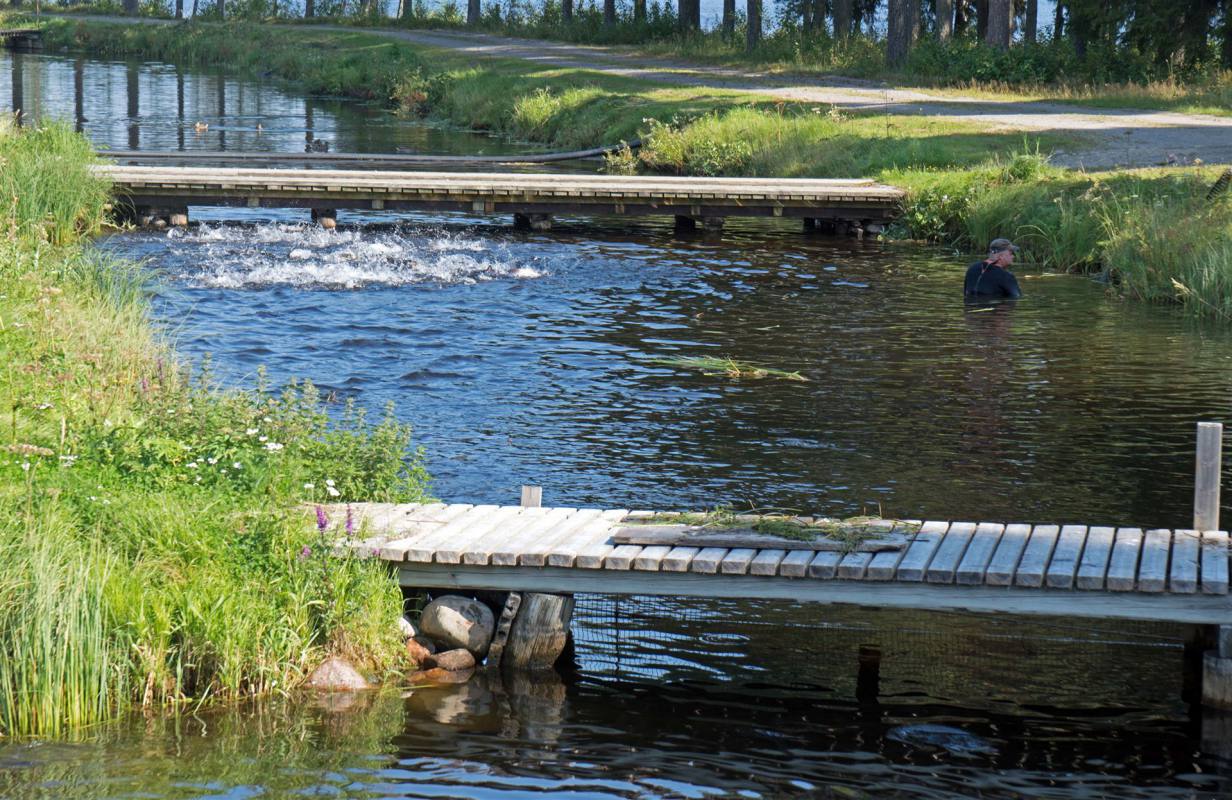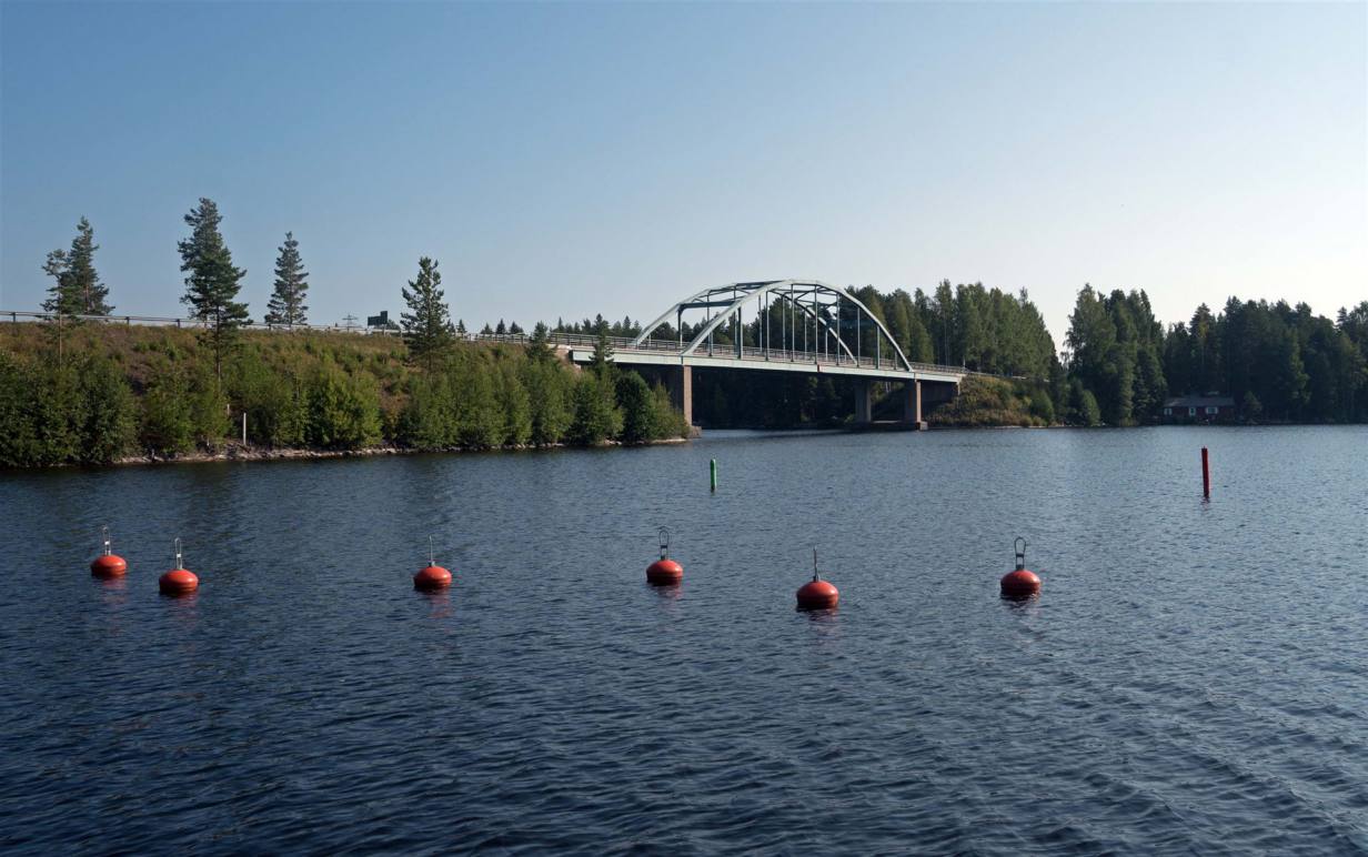 Unterwegs immer wieder Brücken über den See. Links und rechts so weit das Auge reichte Wasser und Wälder. Kurz vor Saarijärvi überquerten wir eine Verbindung von zwei Seen. Links und rechts waren gegen 30 grosse Becken mit Forellenzuchten.