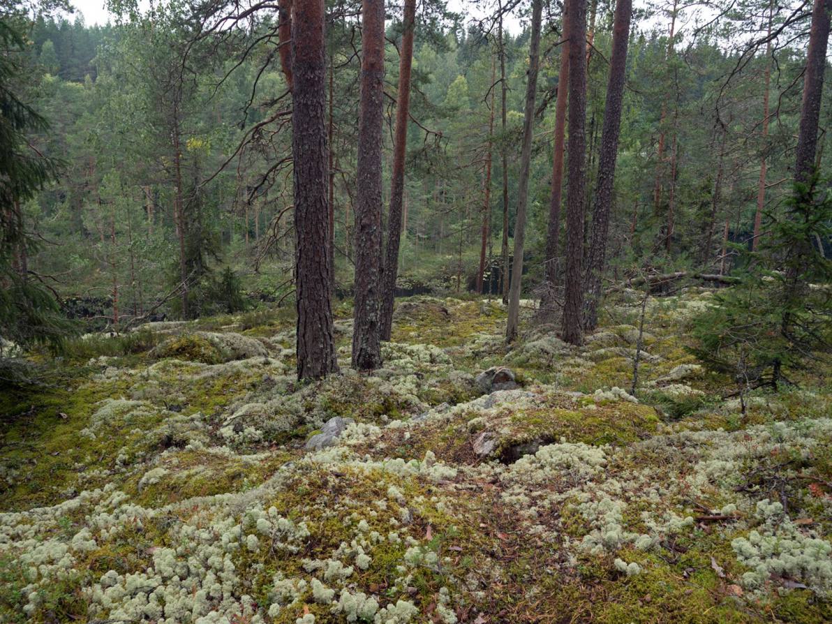 Wir waren alleine auf dem Parkplatz des Naturpark Hauses. Es war ruhig. Am Morgen fuhren wir zuerst zu einem Parkplatz der 15 km vom Zentrum entfernt ist. Von dort konnte man eine kleine Runde von 2.5 km laufen. Diese Runde ist in einem sehr alten Wald. Der Seitseminen Nationalpark ist dieses Jahr 40 jährig und umfasst 46 km2. Wir haben auf dem Parkplatz Kovero unser Fahrzeug abgestellt. Man läuft dann durch ein Gelände mit mehreren Häusern die man besichtigen kann. Auf der Karte ist links der Startort eingezeichnet. Es geht anschliessend in einen alten Wald, der interessant ist. Es leigen Bäume die von Sturm gefällt wurden oder ander die bereits stark in der Verrottung sind. Das ergibt ein stimmiges Bild.