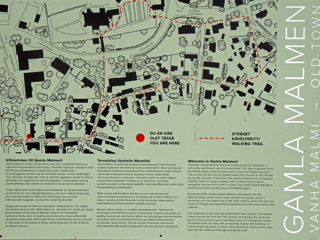 Das kleine Dorf hatte einige Häuser, die heute zu einem Restaurant oder Hotelzimmern ausgebaut wurden. Unten am See hat es eine wunderschöne Holzkirche die aber nicht offen war. Zwischen 1619 und 1962 war auf die Insel eine Leppra Krankenstation. und nachher ein Spital. Seit 1964 ist eine Forschungsanstalt der Universität Turku. Die Insel hat keine Autos aber viele Quads, die die gleiche Arbeit verrichteten. Als das Schiff wieder losfuhr wurde ein Bagger und ein LKW eingeladen. Es wird alles was es gibt mit dem Schiff verschoben.