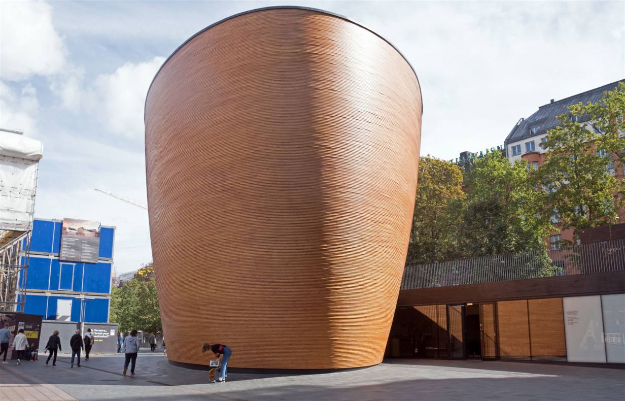Nach dem Besuch wollte Tuulia etwas besonderes ansehen. Wir wussten aber nicht wo das Gebäude steht. So liefen wir gegen den alten Busbahnhof. Dort erblickten wir zwar nicht das gesuchte aber ebenfalls etwas Spezielles. Auf einem grossen Platz stand ein "Holzei" so sah es jedenfalls aus. Es war die neue Kampin Kapelle. Diese Kapelle ist ein Ort der Begegnung, der Ruhe und des Friedens. Jeder ist eingeladen einen Moment der Ruhe und des Friedens in der Kapelle zu geniessen, Während der Öffnungszeiten stehen Mitarbeiter der Kirche sowie des Sozial- und Gesundheitsamtes in der Lobby der Kapelle für Besucher zur Verfügung. Es muss kein Termin vereinbart werden. Die Kapelle wurde von drei finnischen Architekten entworfen. Sie ist 11.5 m hoch und besteht aus drei verschiedenen Holzarten. Die Aussenwände sind aus Fichtenholz gefertigt behandelt mit einer Nanobeschichtung. Die Innenwände bestehen aus Erlenholz, das in Form gefräst wurde. Für die Einrichtung und die Innentür wurde Eschenholz verwendet. Wenn man drinnen ist hört man vom lärm rund um die Kirche rein gar nichts.