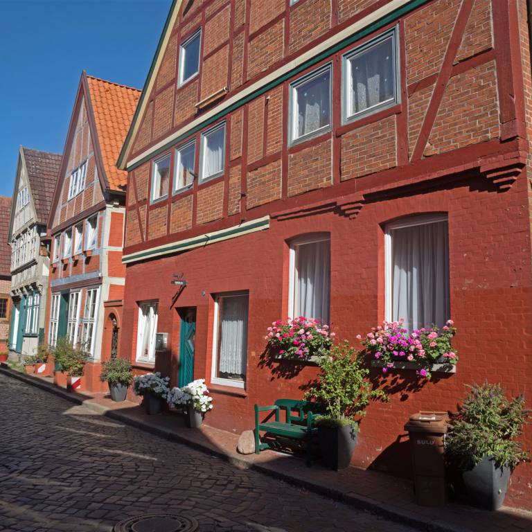 Bevor wir abfuhren haben wir noch die kleine Stadt an der Elbe besucht. Es hat eine Strasse die der Elbe entlang verläuft und gesäumt ist von bunten Fachwerkhäuser wunderbarem Weitblick über die Elbe. Direkt am Ufer und an den Hängen der Elbe gelegen, reihen sich historische Fachwerkhäuser in der Elbstraße aneinander. Mit den vielen liebevoll sanierten Häusern ist die Altstadt von Lauenburg das größte Denkmalensemble in ganz Schleswig-Holstein. An vielen Häusern steht die Geschichte der Liegenschaft. Bei einem Spaziergang über das alte Kopfsteinpflaster der Schifferstadt wird Geschichte lebendig. Zahlreiche kleine Gassen und Treppen verbinden die Altstadt mit der Oberstadt. Das dort gelegene Schloss mit Schlossturm und Fürstengarten erinnert an die Zeit der askanischen Herzöge. Die Elbe hat die Geschichte der Stadt geprägt. Und die Schifffahrt selbst lässt sich in Lauenburg immer noch erleben. Moderne Fahrgastschiffe und historische Dampfschiffe laden zu Touren auf der Elbe, dem Elbe-Lübeck-Kanal oder dem Elbe-Seiten-Kanal ein.