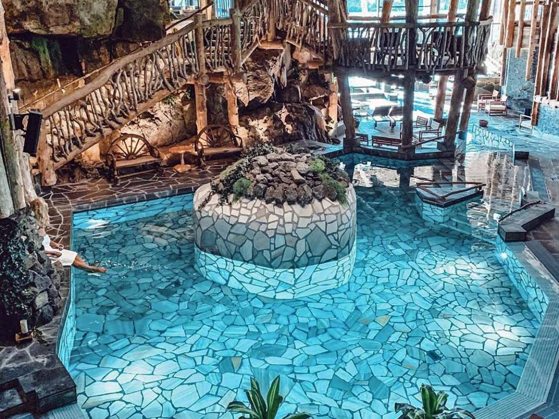 Am Morgen genossen wir den herrlichen Sonnenschein. Der Ausblick von oben fantastisch. Wir freuten uns auf das Morgenbuffet das hielt was es versprach. Ein fast unendliches Buffet mit allem was man sich wünschen kann und noch mehr. Wir genossen auf der Terrasse das Frühstück. Das Innenleben des Hotels ist unvergleichlich. So etwas habe ich noch nie gesehen. Das Hotel ist in den Felsen gehauen und mit sehr alten Baumstämmen konstruiert.