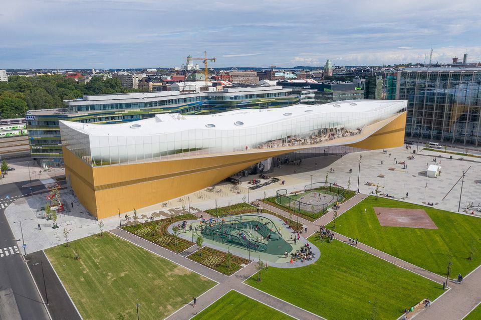Nachdem Tuulia eine Frau gefragt hatte wo das gesuchte Gebäude sich befindet haben wir es dann doch noch gefunden. Es ist sehr nahe des Bahnhofes. Wir suchten die Zentralbibliothek. Die finnische Hauptstadt Helsinki hat seit 2018 eine neue Bibliothek, die weit mehr ist als eine bloße Leihstelle – sie ist ein Kulturzentrum, ein zentraler öffentlicher Treffpunkt, ein Ort zum Lernen, Arbeiten, Kommunizieren und Entspannen. Das wird, neben dem umfänglichen Funktionsprogramm, vor allem mit einer lebendigen Architektur vermittelt, die sich dem Stadtraum zuwendet. Die Zentralbibliothek Oodi (auf Deutsch Ode) wurde nach dem Siegerentwurf des ortsansässigen Architekturbüros ALA Architects realisiert, der aus einem international ausgeschriebenen Wettbewerb 2013 hervorging. Die Beteiligung der Stadtbevölkerung zu Beginn der Planung trägt maßgeblich zum Erfolg des Projekts bei. Es ist unglaublich was es alles gibt neben der Bibliothek. Es hat ein Tonstudio, Nähmaschinen zum nähen, Computerarbeitsplätze, Sitzungszimmer, Restaurant, 3D-Drucker, usw., usw. Alles ist kostenlos und es wimmelt nur so von jungen Studenten, Schülern und Forschern. Sowas habe ich noch nie gesehen. Daneben hat es noch einen grossen Balkon wo man Draussen sitzen kann. In Worten kann man gar nicht alles sagen was das Haus beinhaltet. Hier einige Bilder dazu.