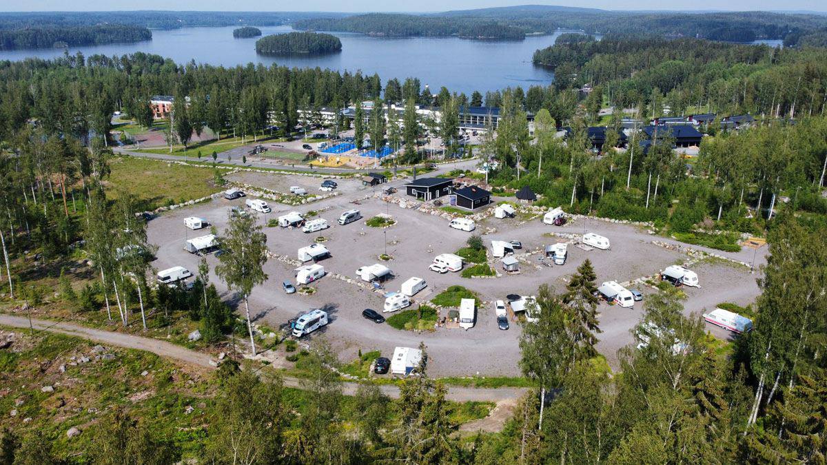 Der Campingplatz liegt in einer malerischen Umgebung, in der Nähe des Kokemäenjoki-Flusssystems. In der gleichen Gegend von Ellivuori Resort befinden sich zum Beispiel das Skigebiet Ski Center Ellivuori und das Hotel & Restaurant Ellivuori mit ihren Dienstleistungen. Der Platz wird im Winter besser besucht sein als jetzt. Es ist zwar nur ein kleines Skigebiet mit wenigen Metern Abfahrten. Jedenfalls war keine Rezeption besetzt. Ich konnte aus einem Kasten eine Anmeldeformular heraus nehmen. Dieses muss am Ende wieder abgelegt werden und die Rechnung kommt anscheinend per Mail. Egal, es ist schön ruhig und grosszügig angelegt. Ich habe zuerst einmal Ordnung im Wohnmobil gemacht. Dann habe ich die Umgebung erkundet und einige Drohnenbilder gemacht.