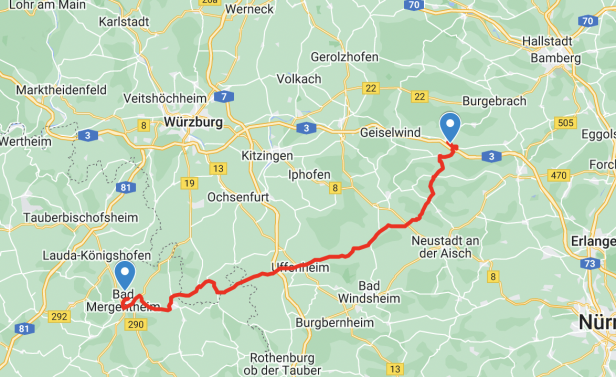 Gestern Abend planten wir den nächsten Tag. Da wir nochmals warten müssen und eventuell heute Abend das Fahrzeug bekommen, machten wir einen Ausflug in der näheren Umgebung. Wir fuhren rund 30 km nach Ebrach. Das ist kein Schreibfehler die Ortschaft heisst beinahe genau wie unsere Heimatstadt aber ohne M. Der Hauptort liegt im Steigerwald an der Mittleren Ebrach zwischen Bamberg im Osten und Würzburg im Westen. Dort befindet sich das ehemalige Zisterzienserkloster Ebrach.