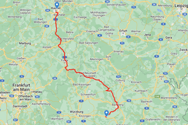 Nach einem guten Frühstück fuhren wir los um heute das Fahrzeug abzuholen. Unterwegs haben wir noch einige Kleinigkeiten eingekauft. Um halb elf Uhr waren wir beim Autovermieter, haben aufgetankt und er hat uns ins ins Werk Chauffiert. Das war Service. Obwohl Samstag war noch Hochbetrieb in der Serviceabteilung. Mein Fahrzeug war pünktlich fertig und ich konnte es übernehmen. Alles neu und funktioniert. Wir sind gleich losgefahren. Unterwegs haben wir das Mittagessen eingenommen und sind dann gegen 18.00 Uhr in Kassel eingetroffen. Meine Befürchtungen dass alle Plätze belegt sind bewahrheitete sich. Aber es waren nicht ganz alle. Einer war noch frei. Glück gehabt. Morgen geht es weiter.