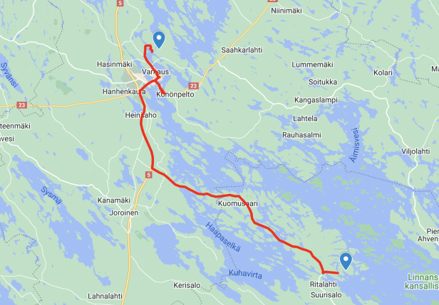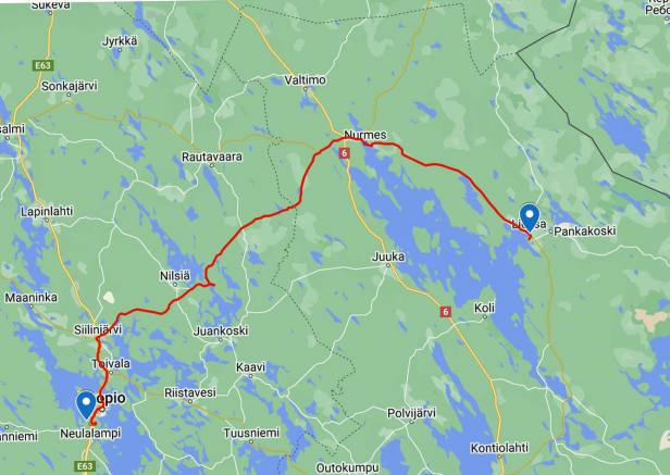 Varkaus - Palikki - Uusi Valamo - Joensuu ----- 142 km