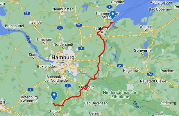 Nach einer guten Nacht starteten wir gegen 09.0o0 Uhr Richtung Schneverdingen. Wir wählten die Route über Land. Erstaunlicherweise hatte es wenig Verkehr, sodass wir am Nachmittag bereits in der Lüneburger Heide ankamen. Unser Platz warf reserviert sodass wir nach dem Bezug des Platzes noch einen Spaziergang ins Dorf machten. Eigentlich wollten wir Essen gehen. Es war aber bereits zu spät und das Restaurant öffnete erst wieder um 17.30 Uhr. Im Dorf selbst war aber ein zweitägiges Schützenfest. So benutzen wir die Gelegenheit im Schützenhaus Kaffee und selbstgemachten Kuchen zu geniessen. Wir spazierten noch etwas in der Heide und dann war es Zeit zum Essen. Inzwischen begann es leicht zu Regnen. Tuulia hatte einen Schirm, ich wie immer nicht. Also wurde ich leicht nass auf dem Nachhauseweg. Kaum im Wohnmobil schüttete dann aber recht stark. Es ist angenehm wenn man im Bett ist und es tröpfelt auf das Dach.